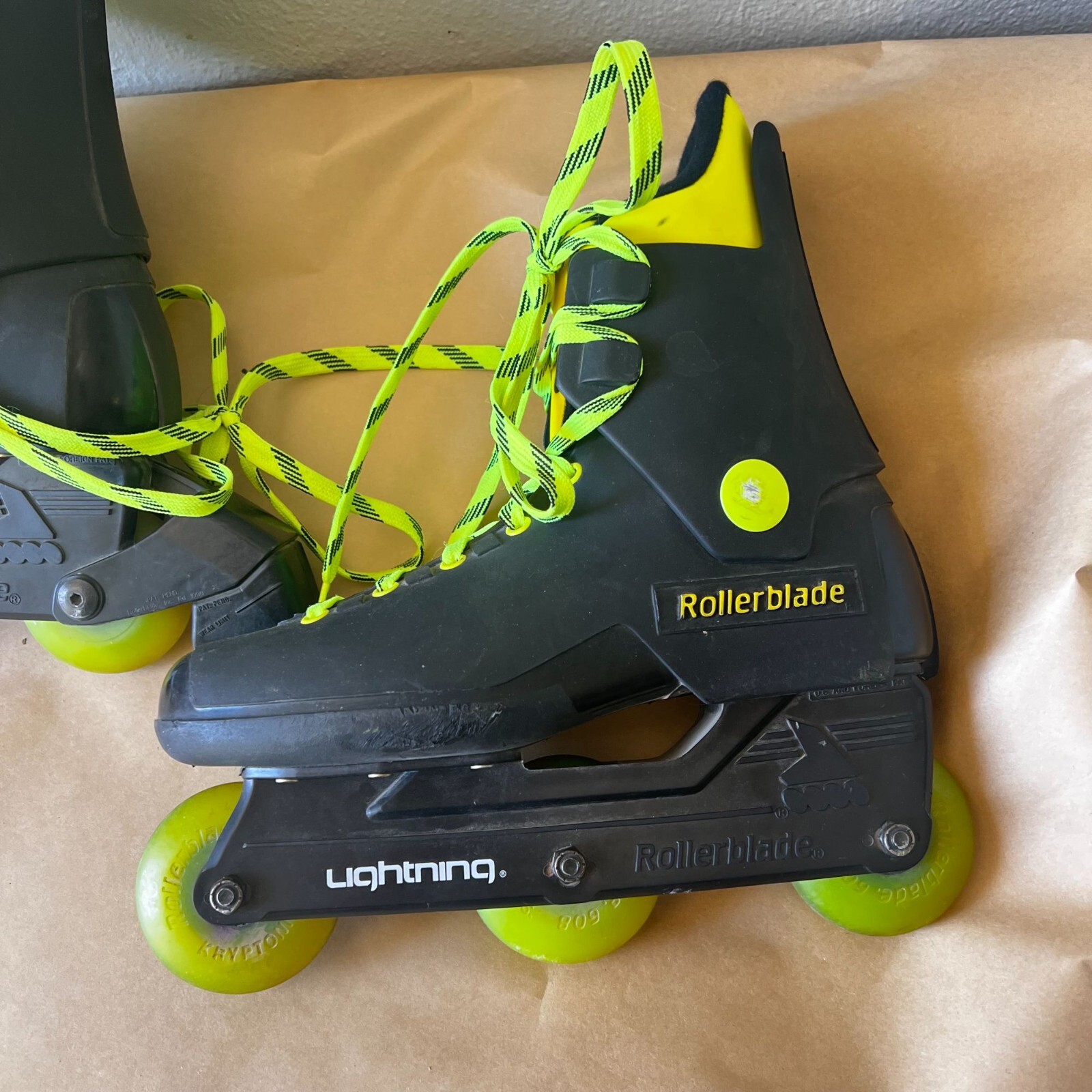 vtg 90s Rollerblade Lightning Inline Skates Sz 40-6 Black Neon Yellow Kryptonics