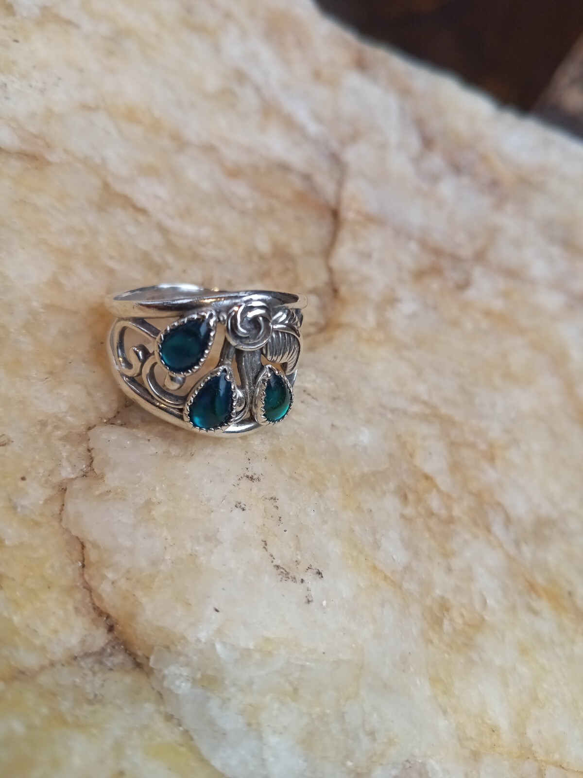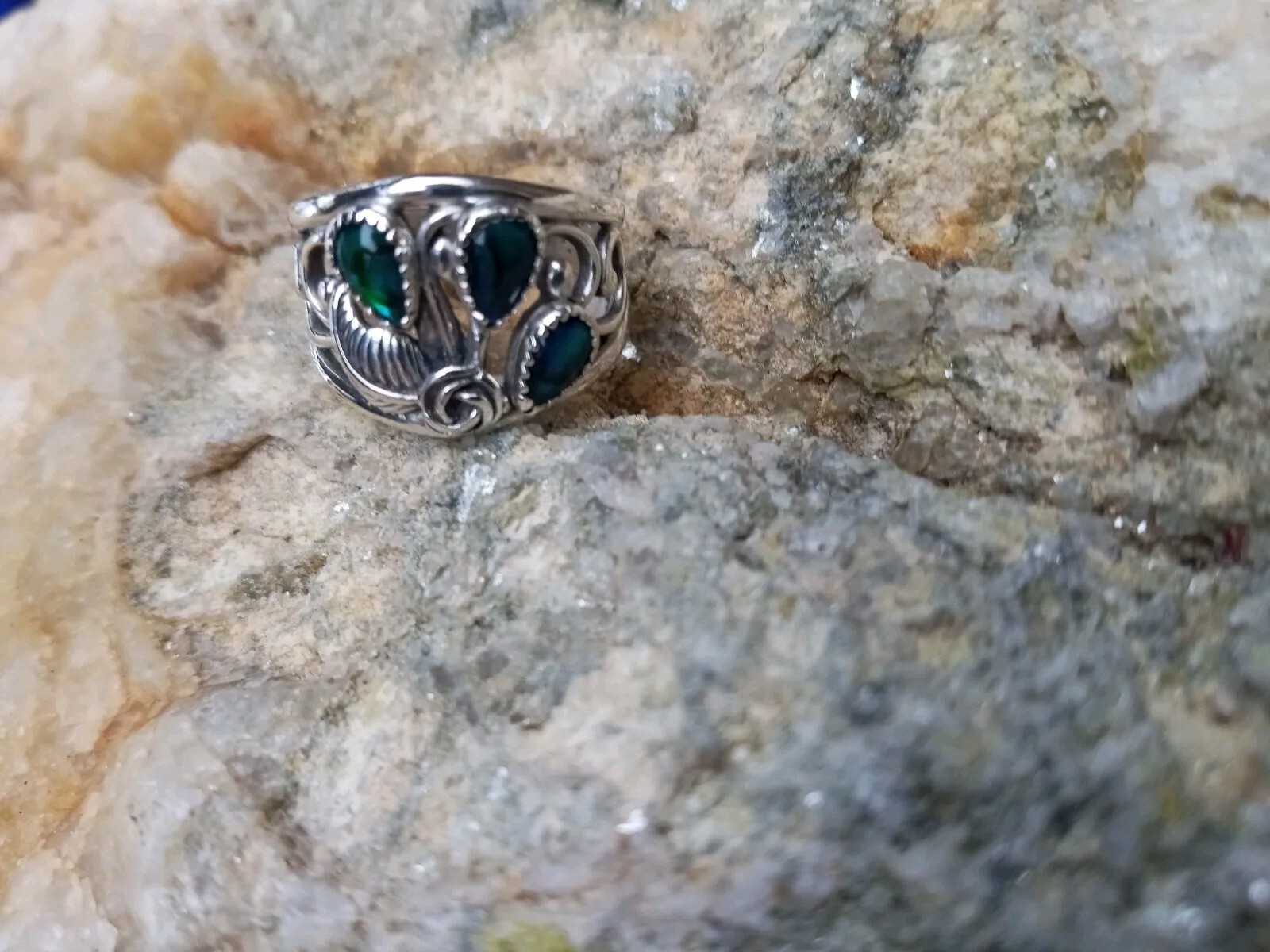 как выглядит Artisan WM Wheeler Sterling Silver 925 Paisley Abalone Ring Wide Band Size 7.5 фото