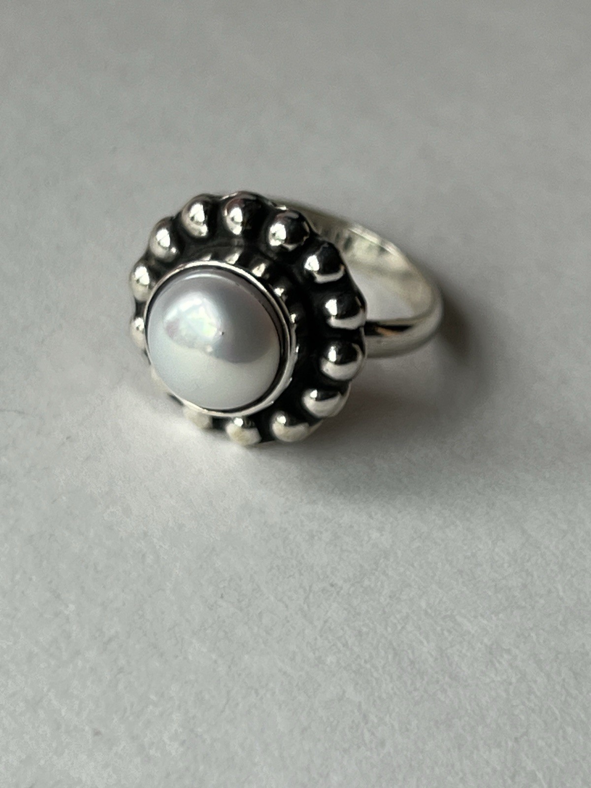 Minimalist Pearl Ring 925 Sterling Silver Modern Artisan Design