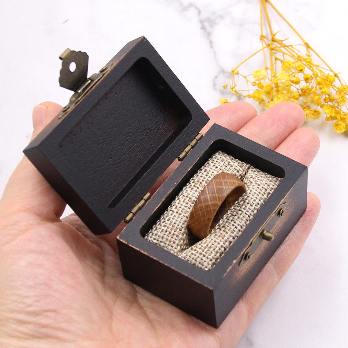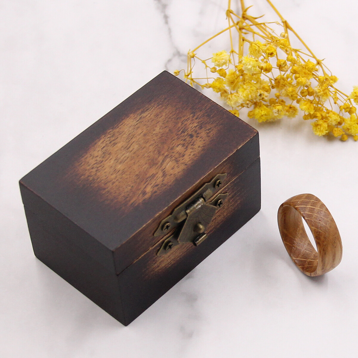 8mm Recycled Whiskey Barrel Domed Wood Wedding Band Ring with Wood Ring Box