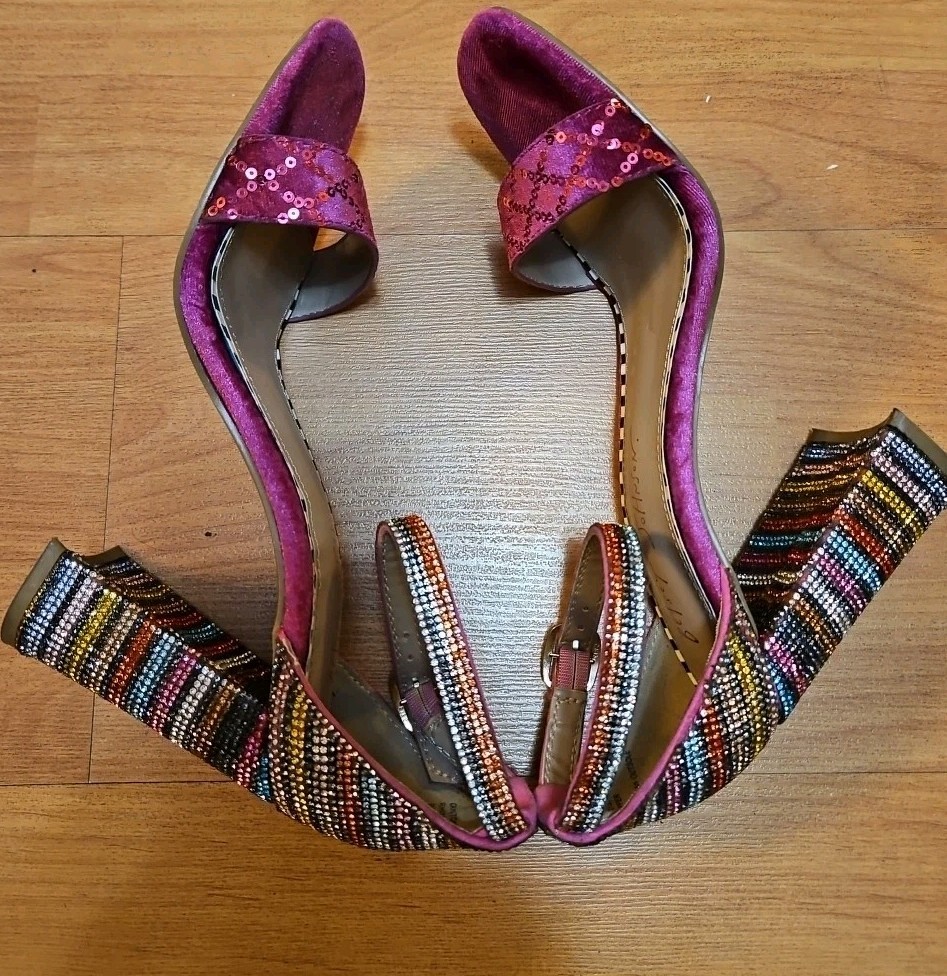 Blue by Betsey Johnson Women s Miri Rhinestone Block Heel Sandals US 8 M