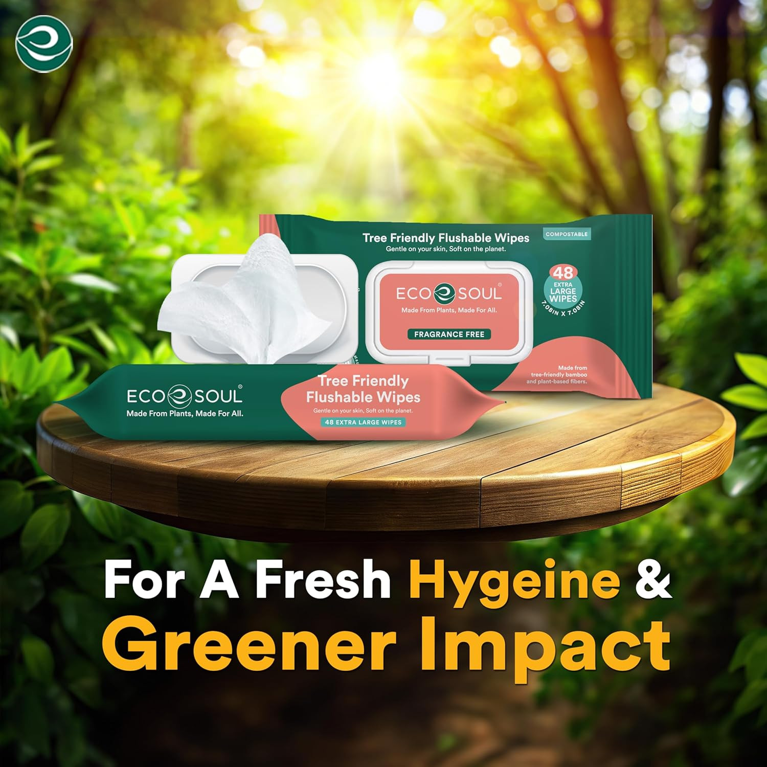 Bamboo Flushable Extra-Large Adult Wipes-Unscented 576 Count 12 Pack of 48 Eco