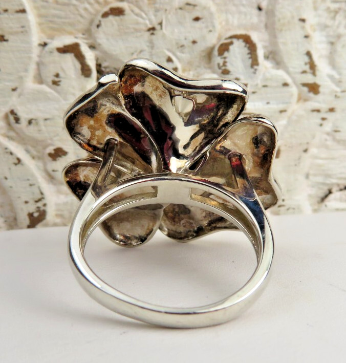 BEAUTIFUL POLISHED STERLING SILVER FLOWER SHAPED COCKTAIL RING SZ 6.5