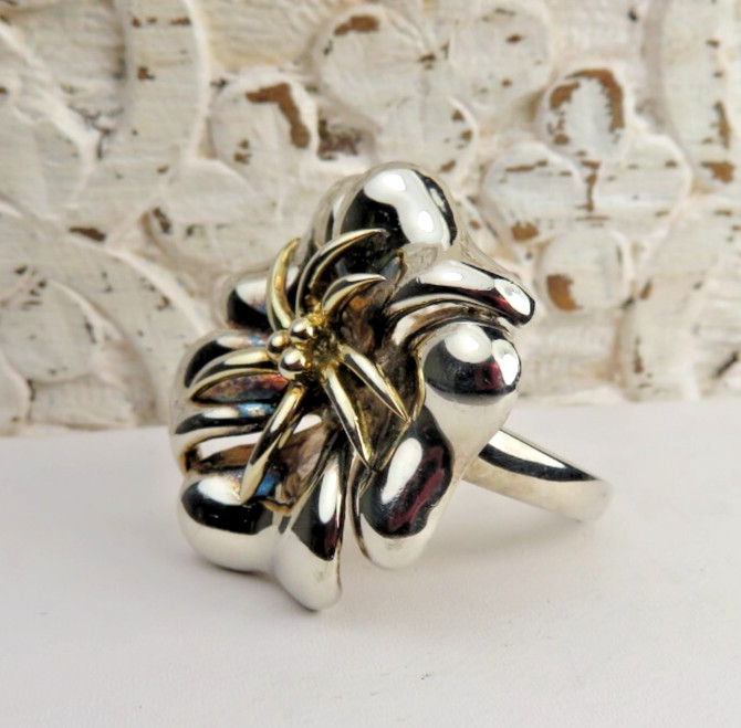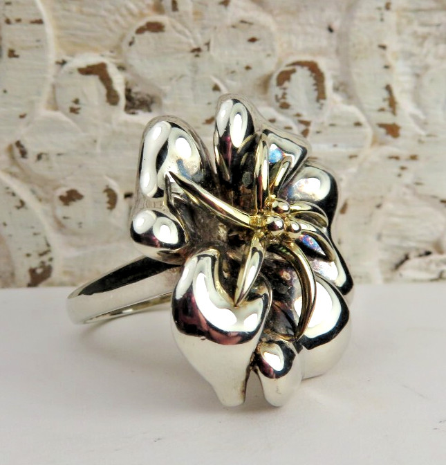 как выглядит BEAUTIFUL POLISHED STERLING SILVER FLOWER SHAPED COCKTAIL RING SZ 6.5 фото