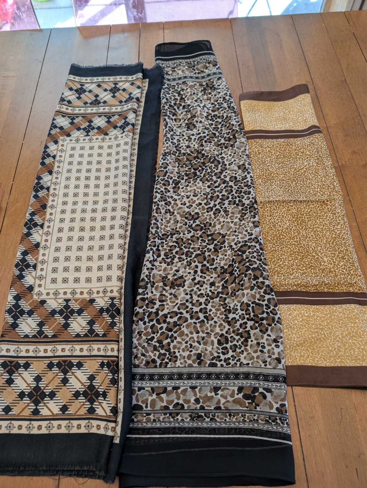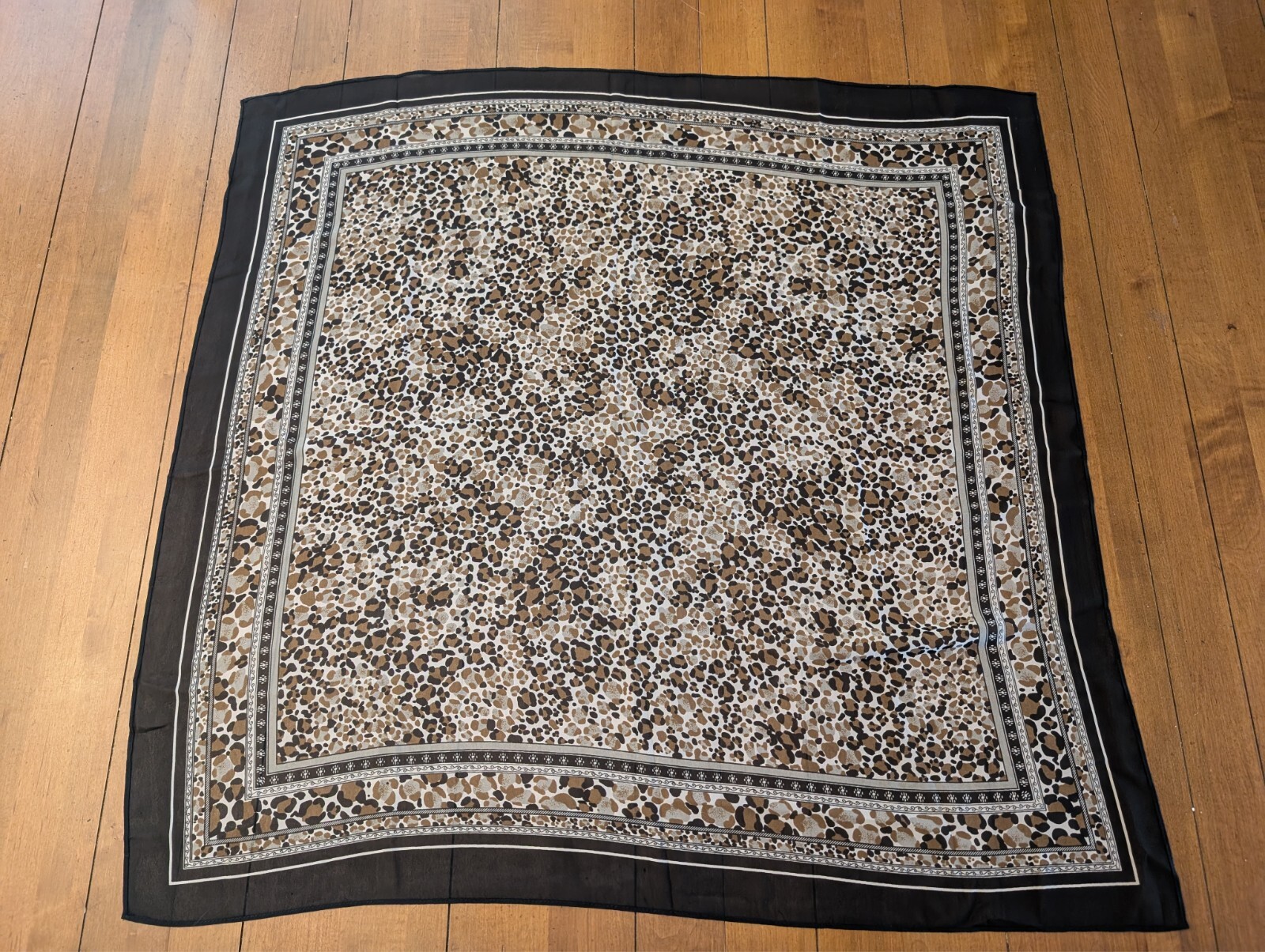 LOT OF 3: Vintage SCARVES Black, White, Tan Elegant MCM Geometric Leopard 20