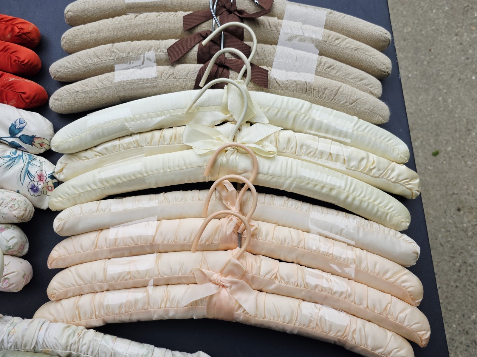 как выглядит Vintage Padded Satin Boudoir Lingerie Clothes Hangers Colorful 80s Lot Of 20 фото