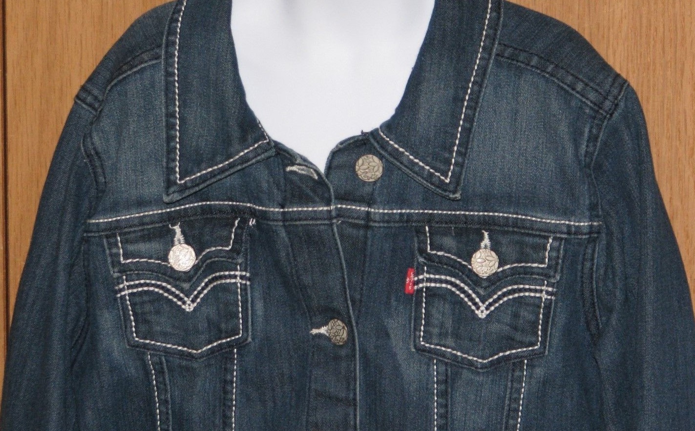 как выглядит Levis Youth XL Blue Jean Button Front Denim Jacket Thick Stitch фото
