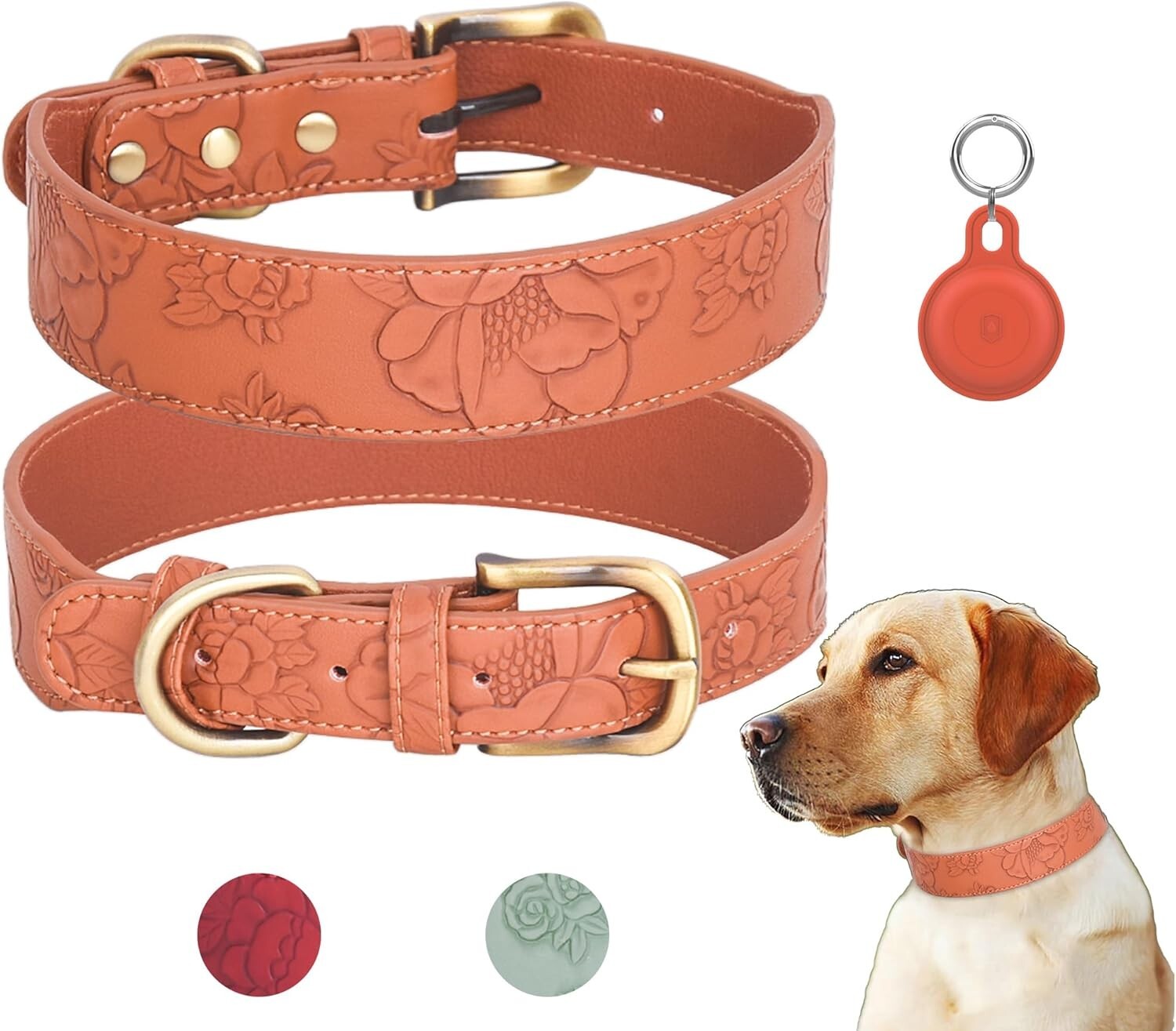 Flower Pattern Faux Leather Dog Collar with Waterproof Airtag Holder