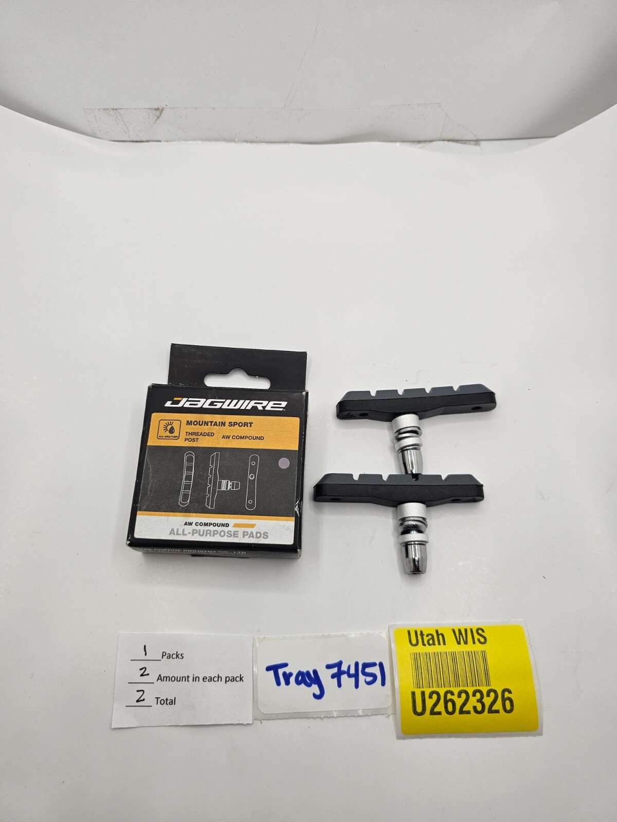 2 PIECES Jagwire Mountain Sport V-Brake Pads Threaded Post Gray All-Weather