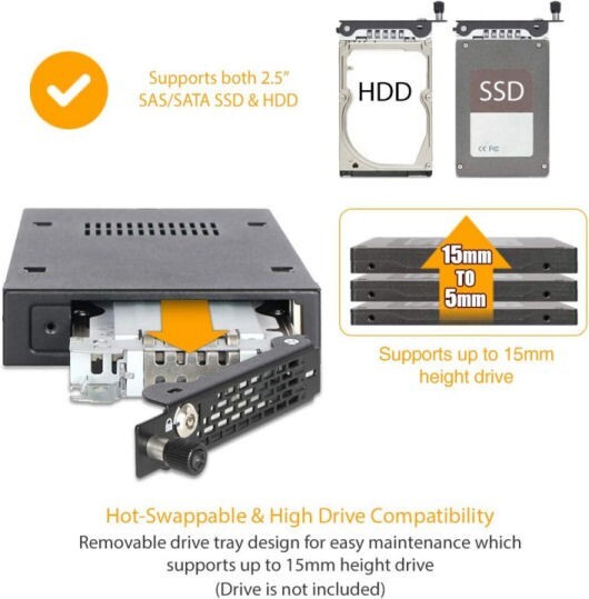 как выглядит ICY DOCK MB491SKL-B 2.5inch SATA/SAS HDD/SSD 3.5inch Bay Mobile Rack фото
