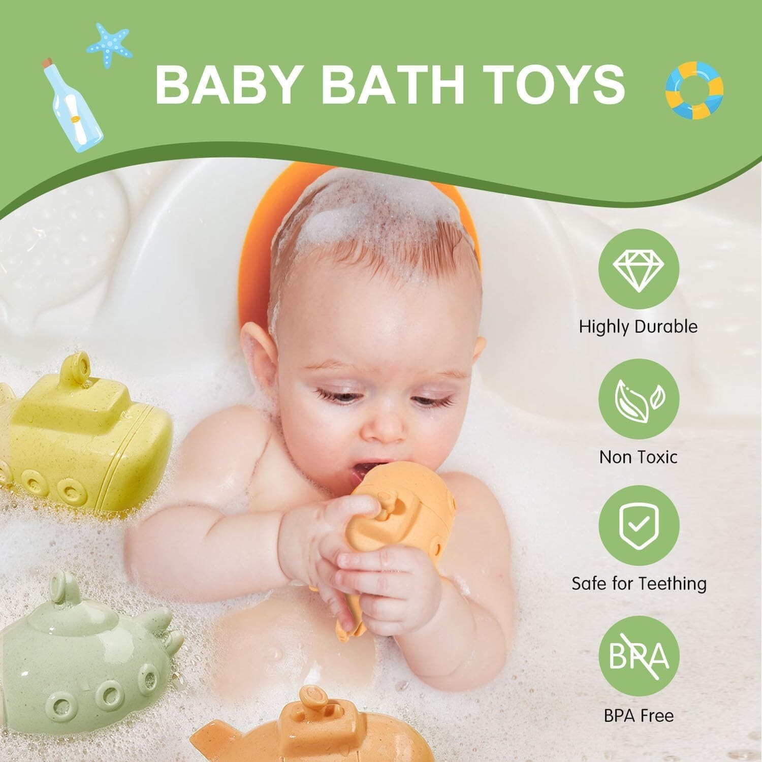 Bath Toys - 3 PCS Toy Boat Set, Pool Toys for Toddlers 1-3, No Hole Bath Toys Fl