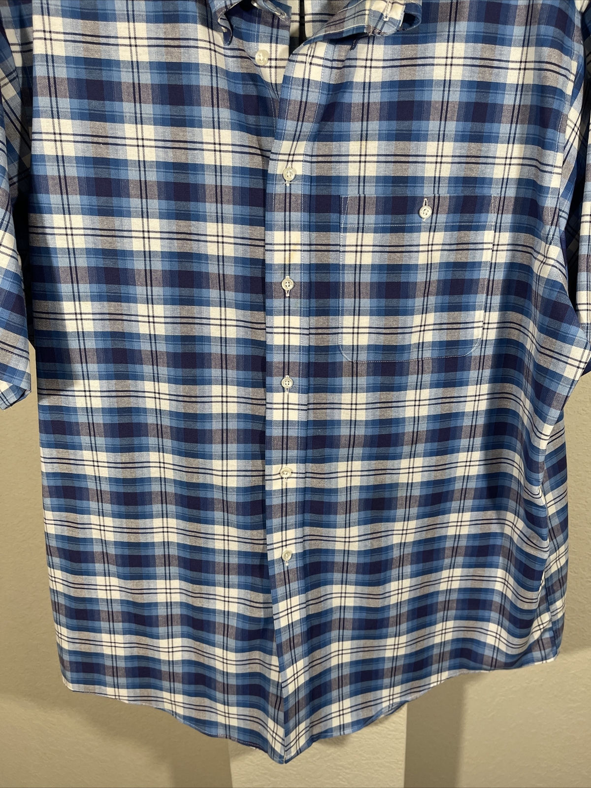 The Arrow Company Oxford Shirt Blue Plaid Wrinkle Free MEN Size 18 Made in USA