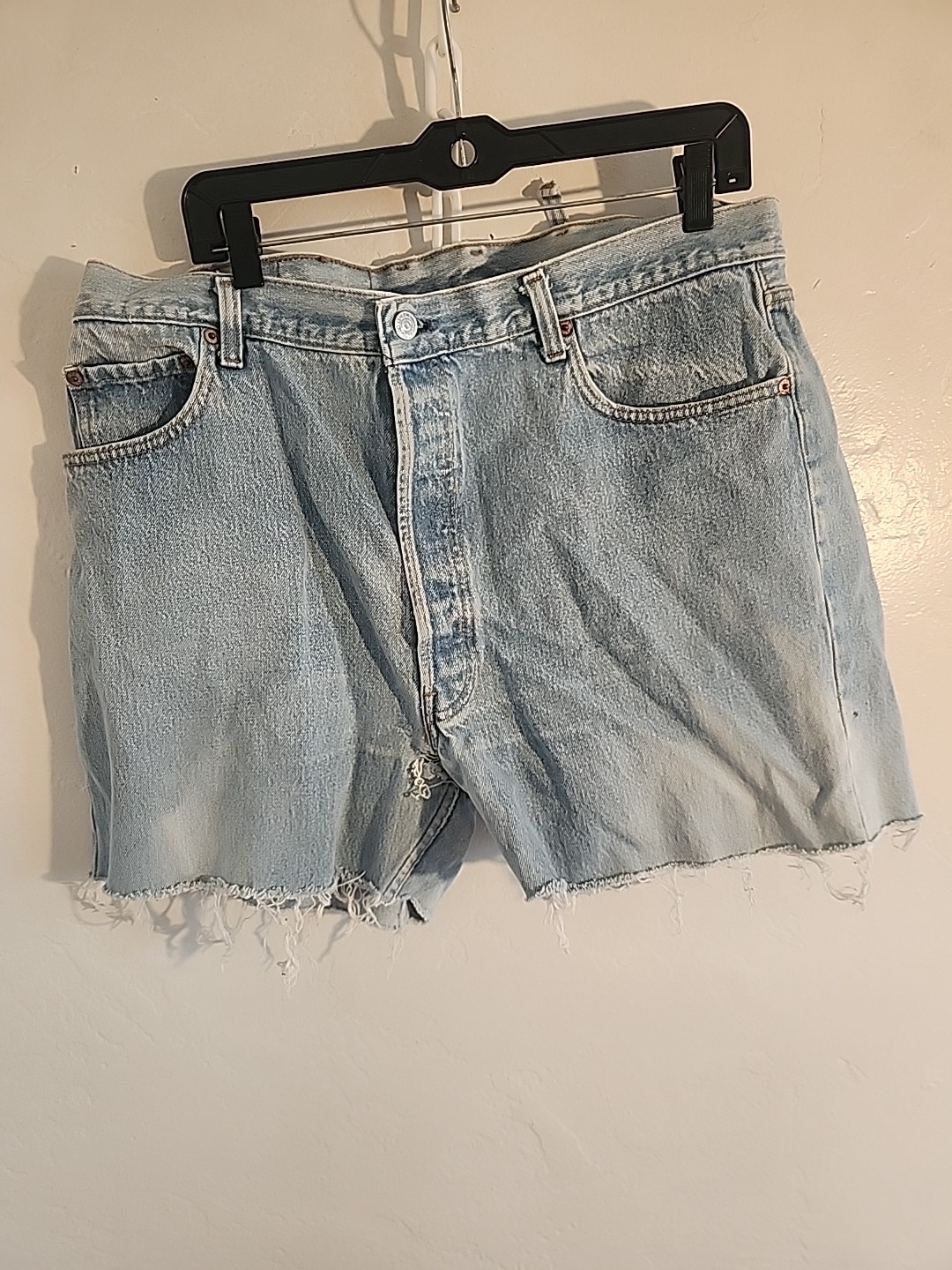 vintage levis cut-offs denim jean shorts button fly 501 cut off 80's 38 w tag 42