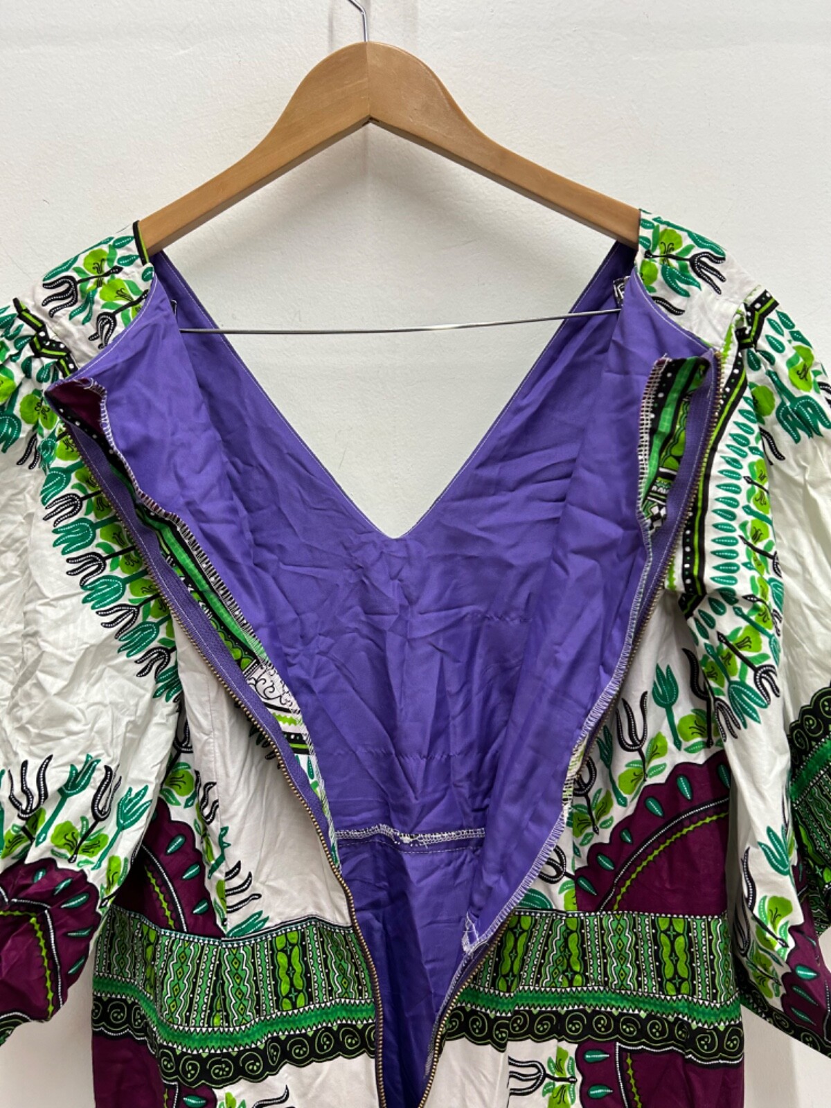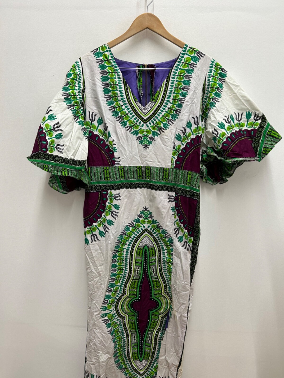 как выглядит African Custom Handmade White Purple Green Abstract Art Dress Womens фото