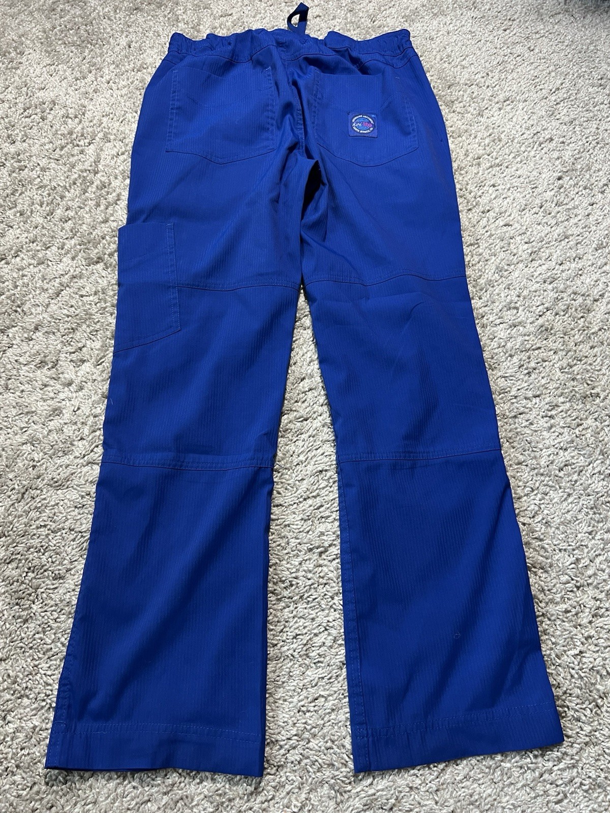 как выглядит Koi Lite Scrub Pants Small Petite Blue Polyester Stretch Pockets Drawstring фото
