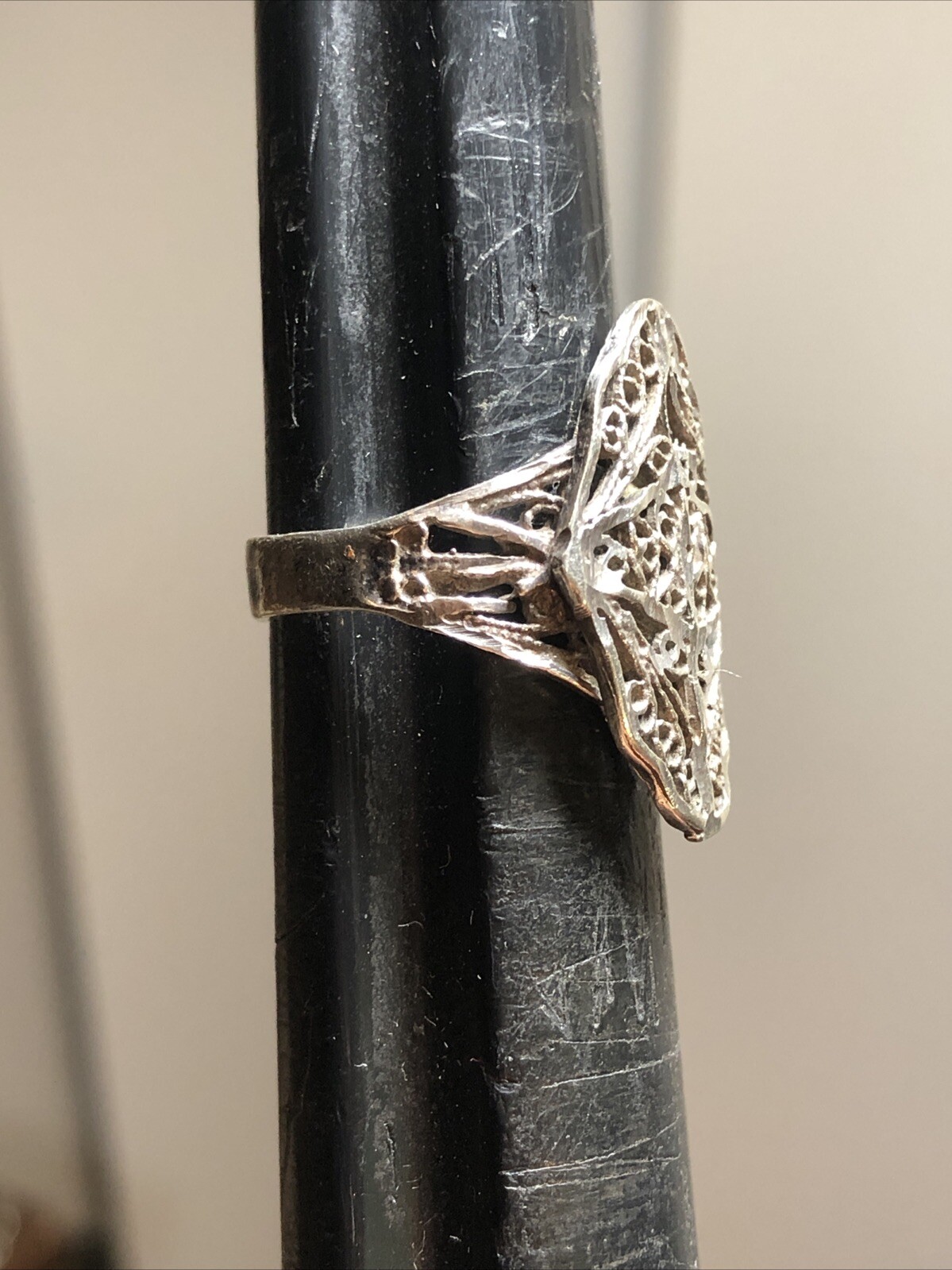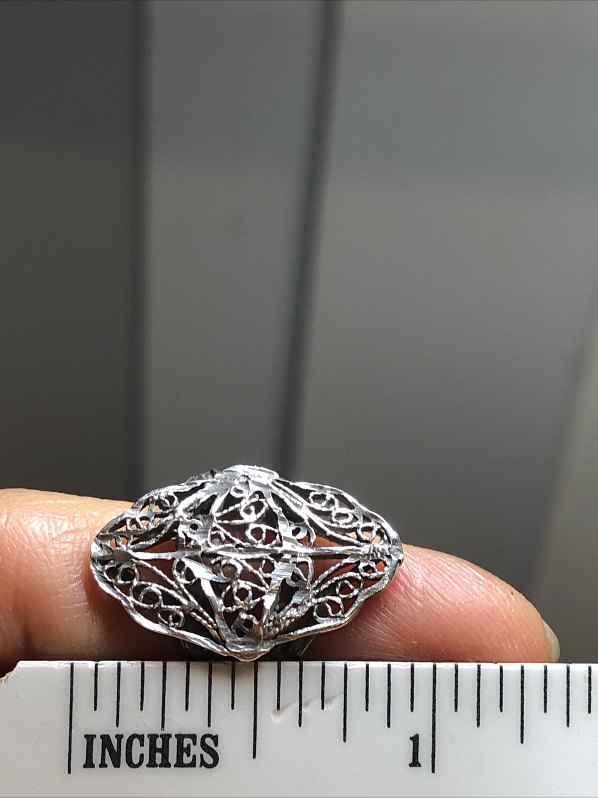 35. Vintage 925 Sterling Silver Hand Crafted Filigree Rhombus Ring 5.25s, 3.1g