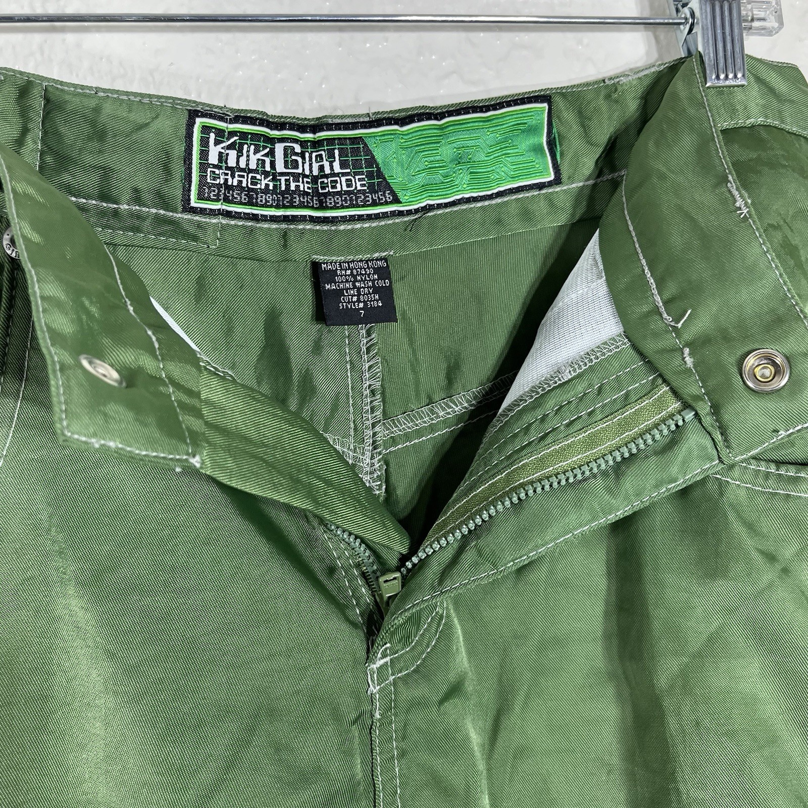 Kik Girl Crack The Code Rare Nylon Green Vintage Raver Pants Women s Sz 7