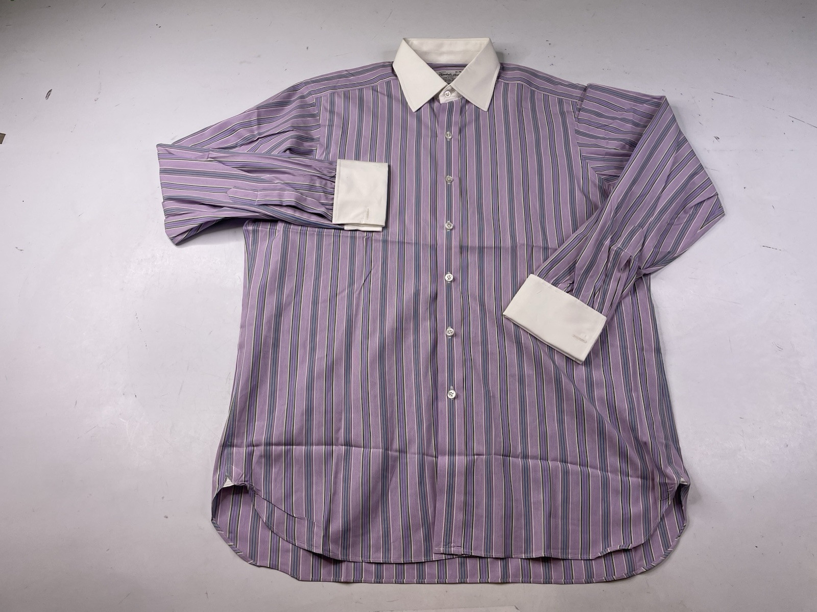 как выглядит Turnbull Asser Dress Shirt Mens 16/41 french cuff contrast collar striped фото
