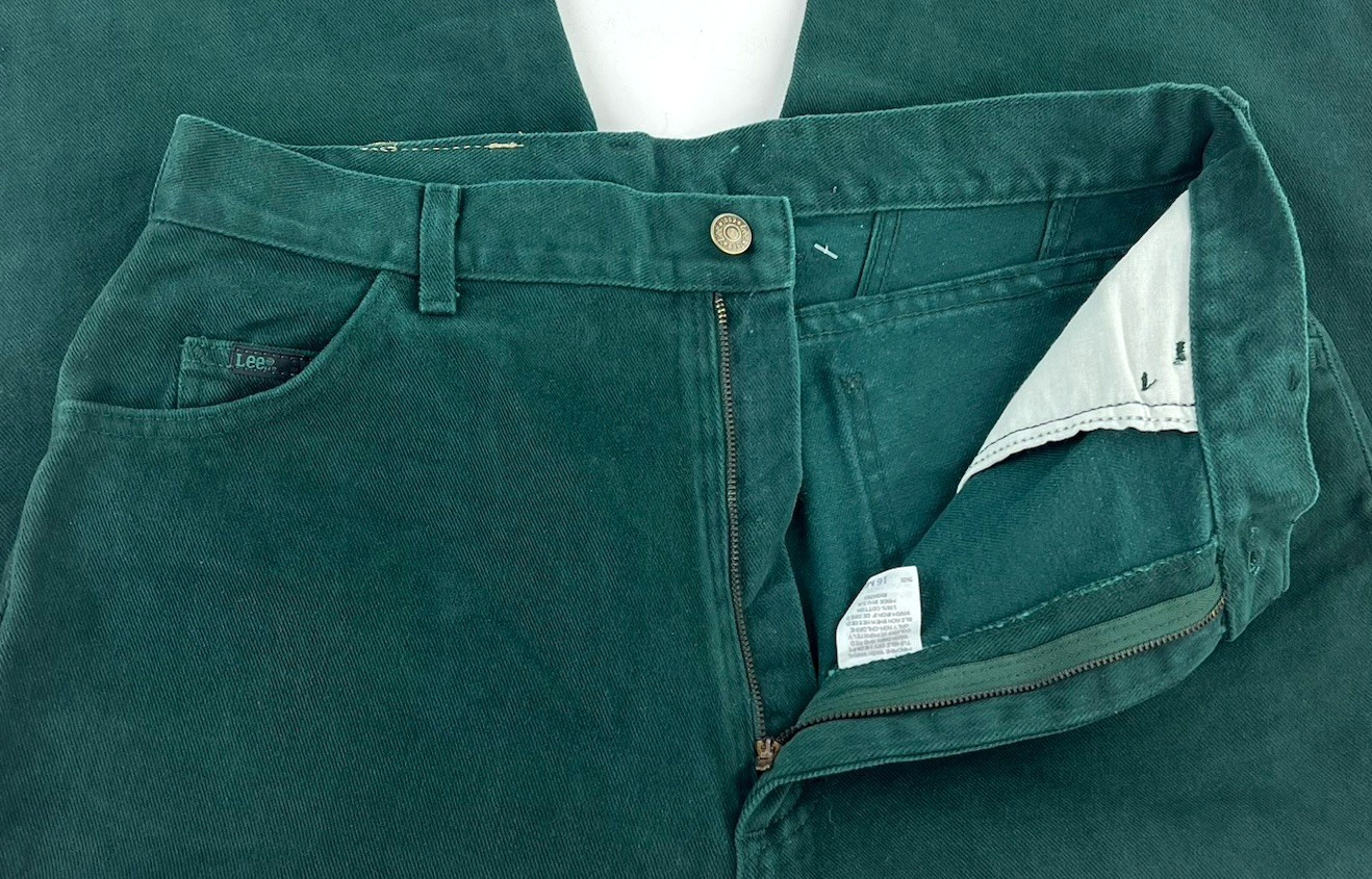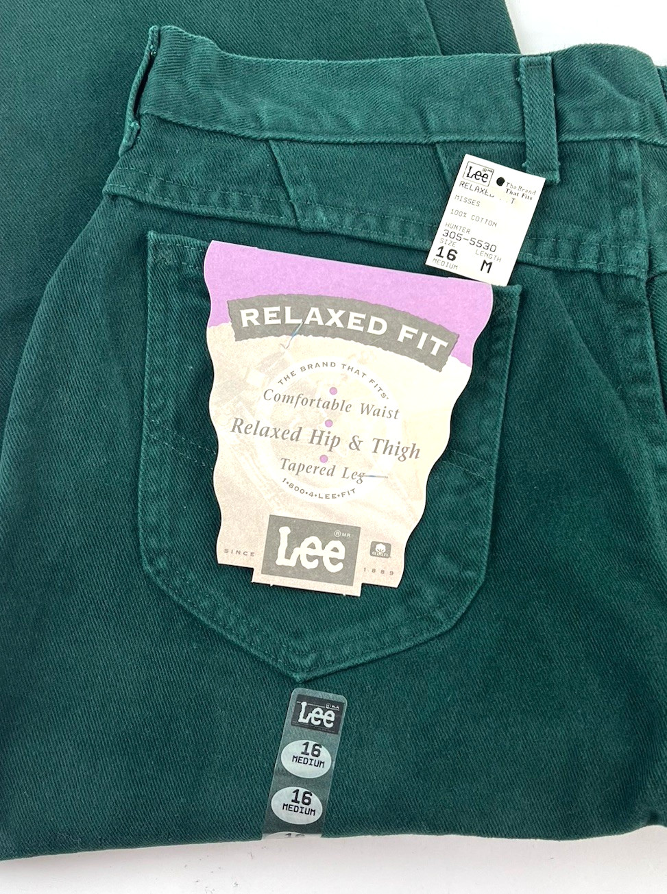 New VTG Lee Denim Jeans Relaxed Tapered Hunter Green USA Women Sz 16M 32x32