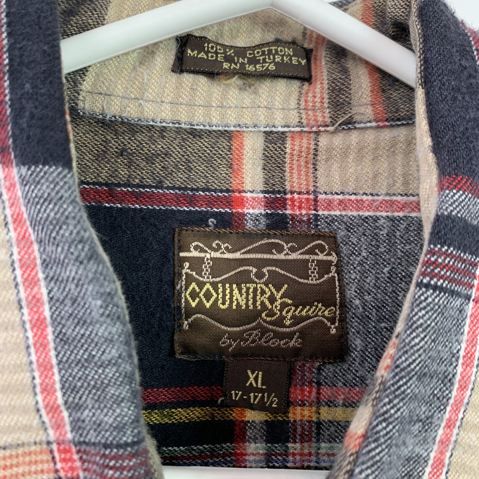 Vintage Country Squire By Block Flannel Plaid Long Sleeve Button Shirt Mens XL