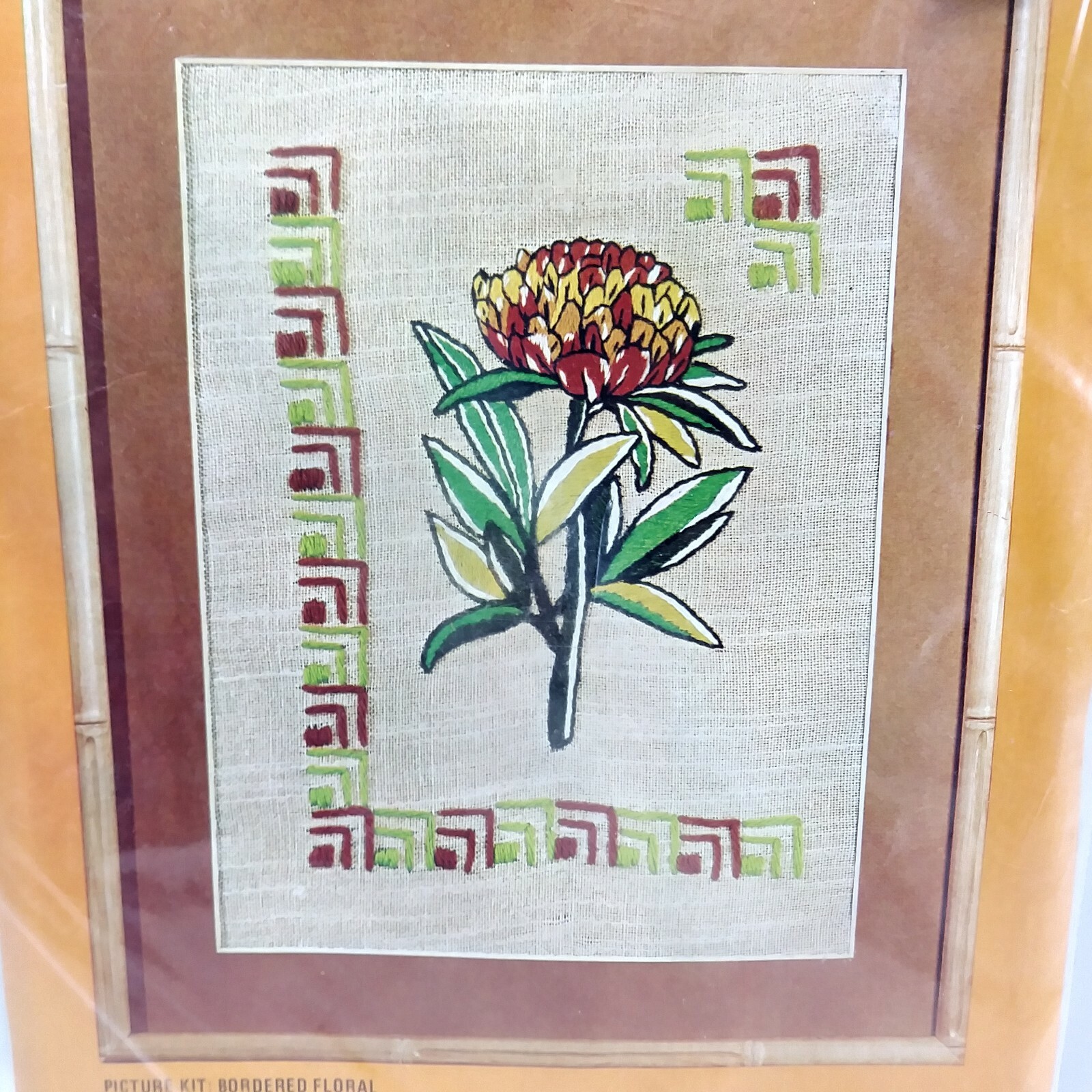 • Vtg Crewel Creative Stitchery Kit Bordered Floral 9x12 Framed Size Sealed