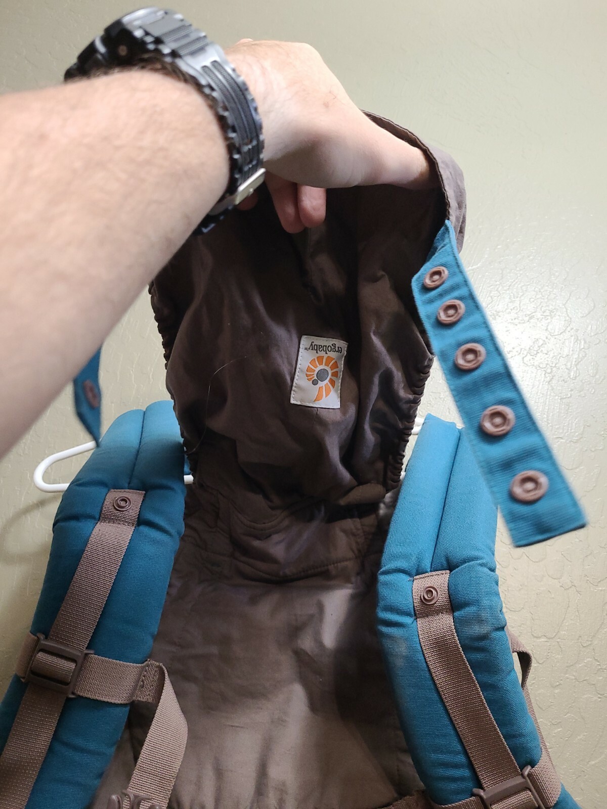 как выглядит Original Ergo Baby Carrier Teal with Camel Lining Front Pocket Zip Pouch фото