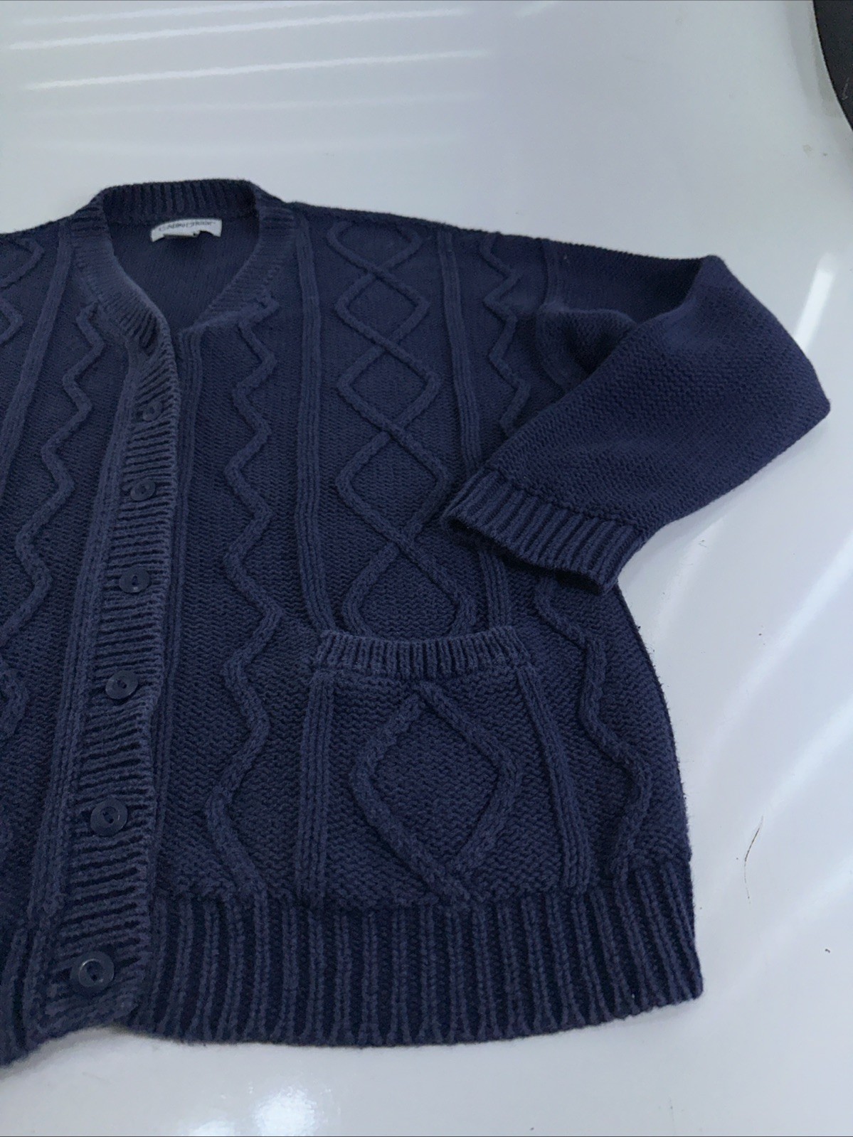 как выглядит Women s Cabin Creek Cardigan Size Large 7- Button Cable Knit Blue Sweater фото