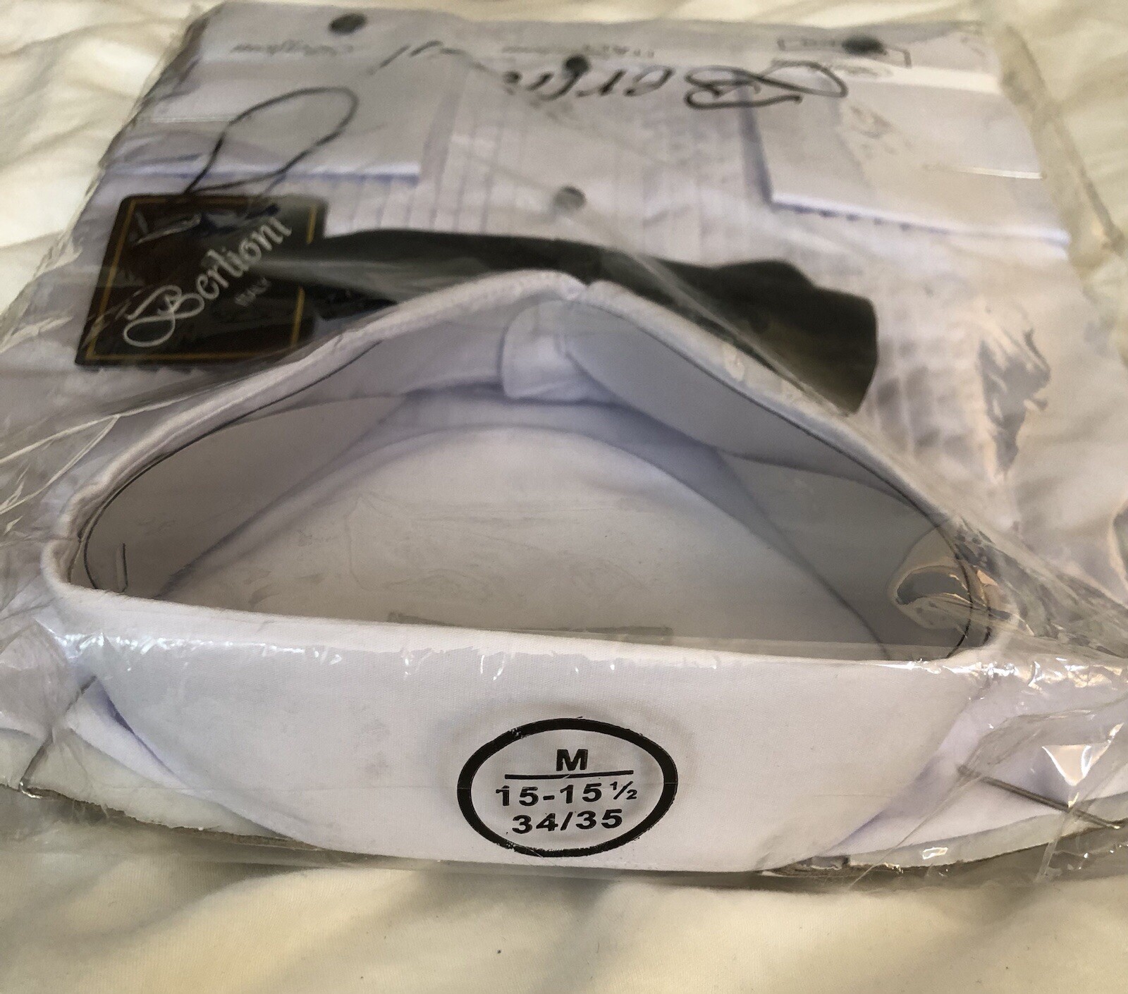 New Berlioni Italy Men's Tuxedo Dress Shirt Laydown Collar Bow-Tie - Medium