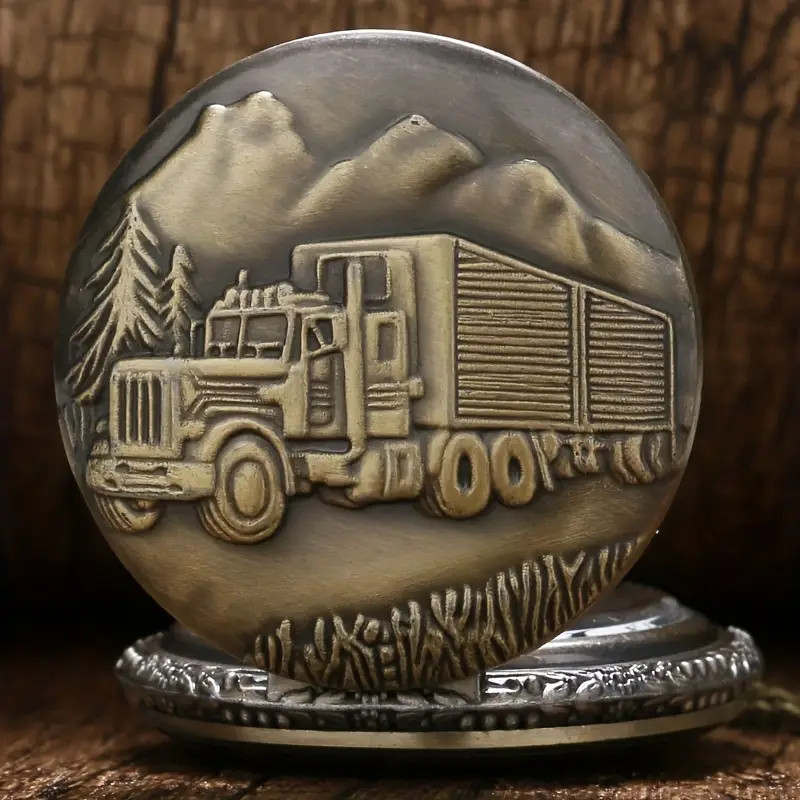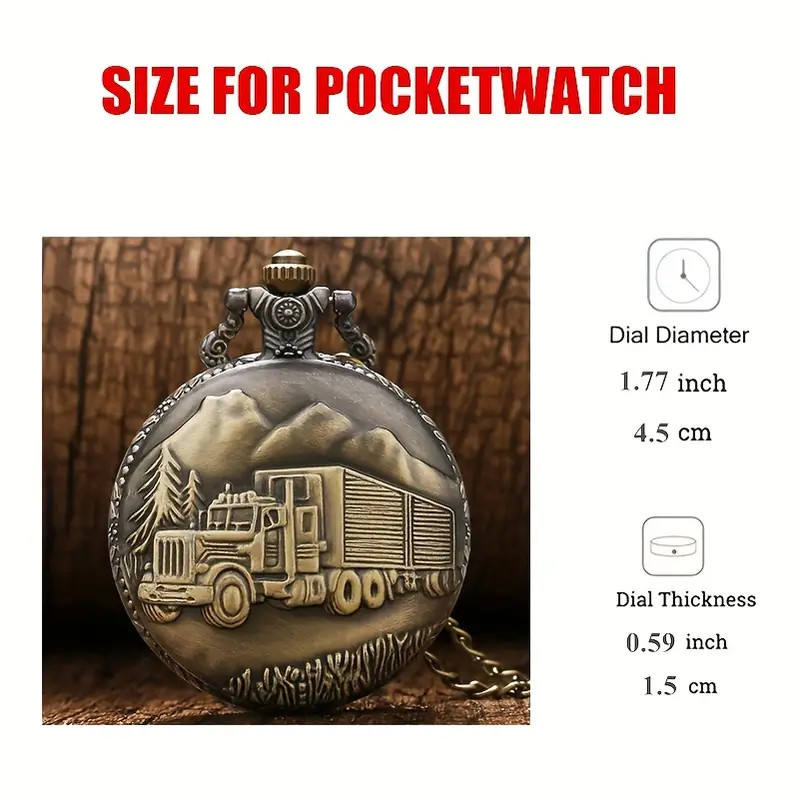 Classic Freight Semi Truck Pocket Watch with 31.5 Chain for Men Women
