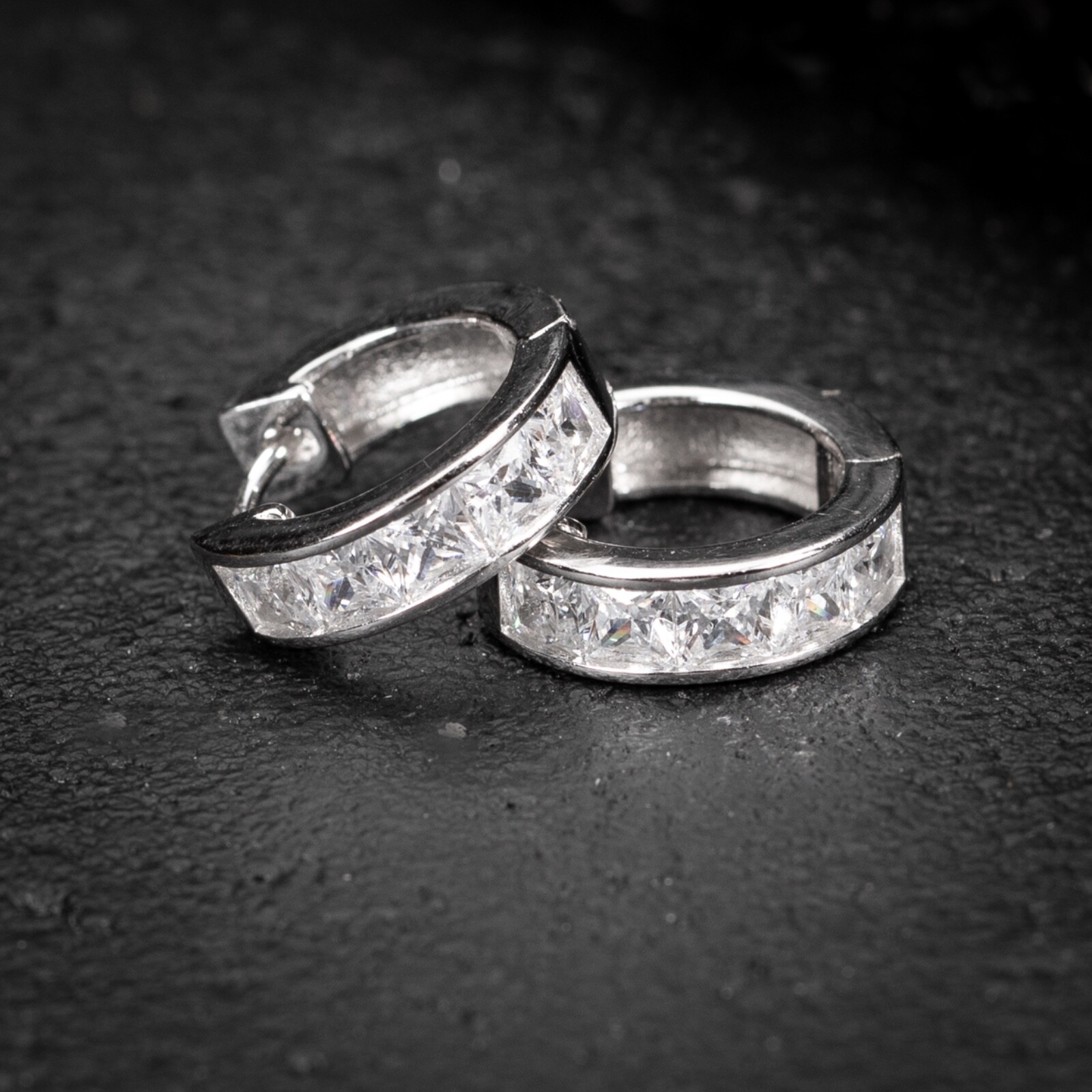 White Gold Plated 925 Sterling Silver Square Princess Cut Huggie Hoop Earrings