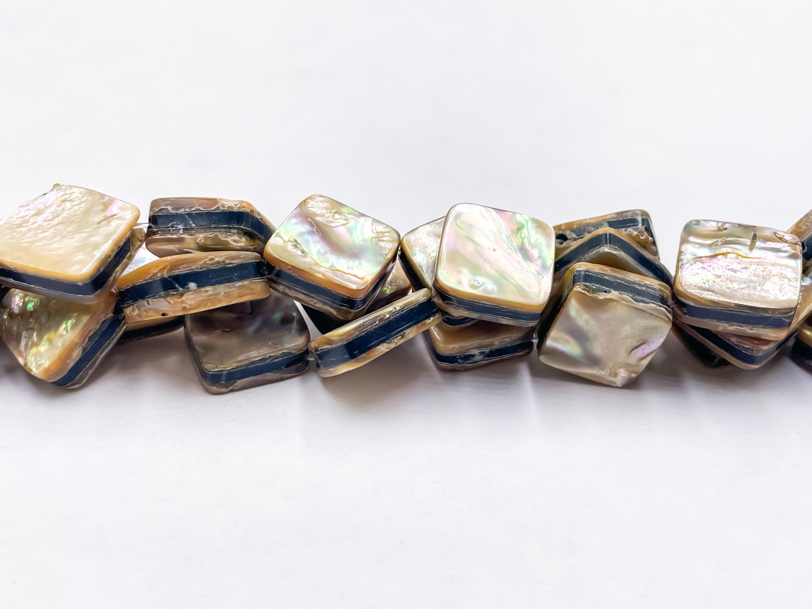 как выглядит Natural Abalone Black Shell Flat Square Shape Beads Size 11x11mm 15.5" Strand фото