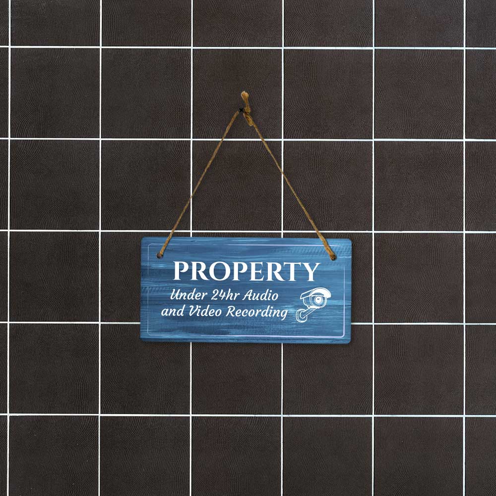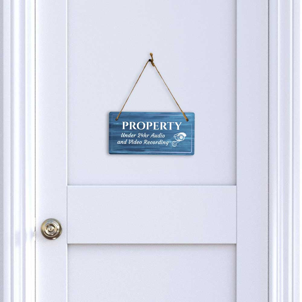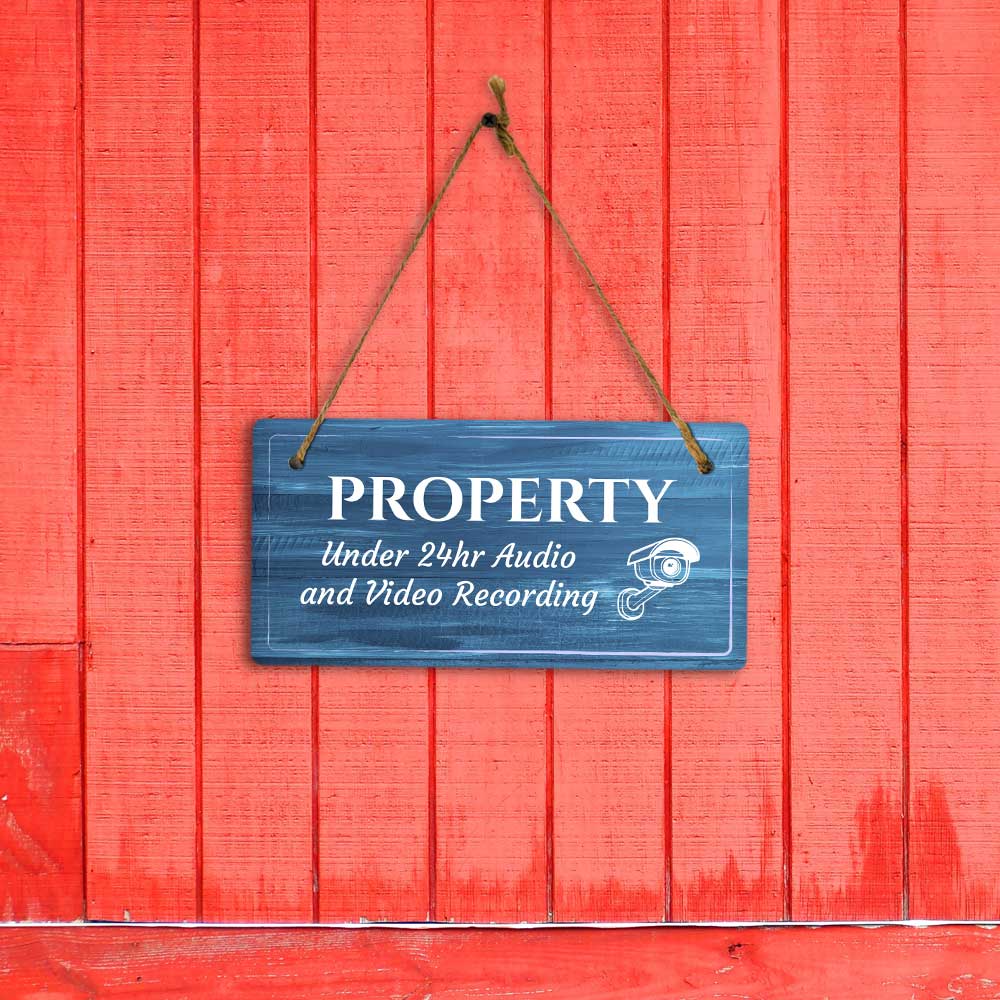 Security Surveillance Rustic Dark Blue Wood 5 x 10 Hanging Signs