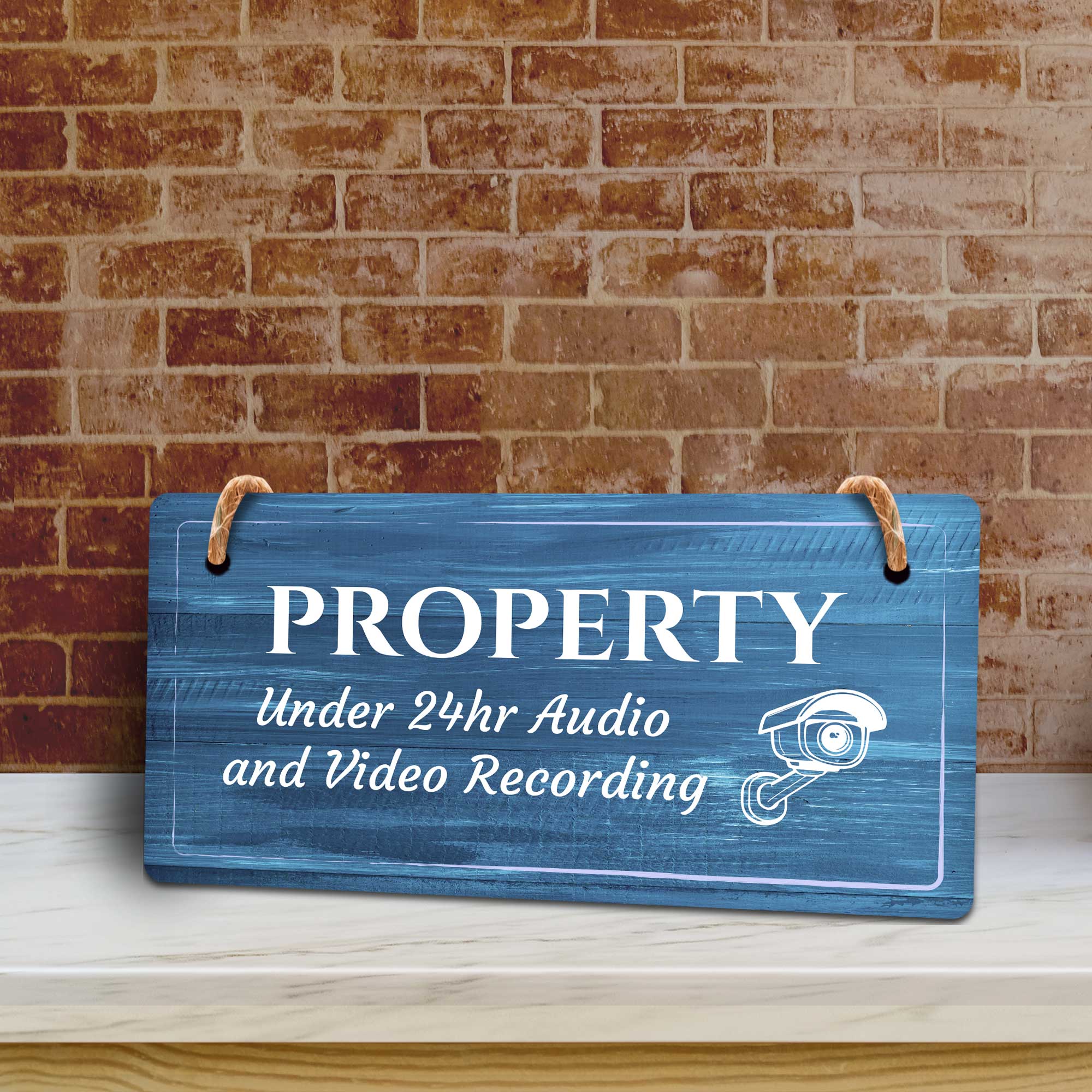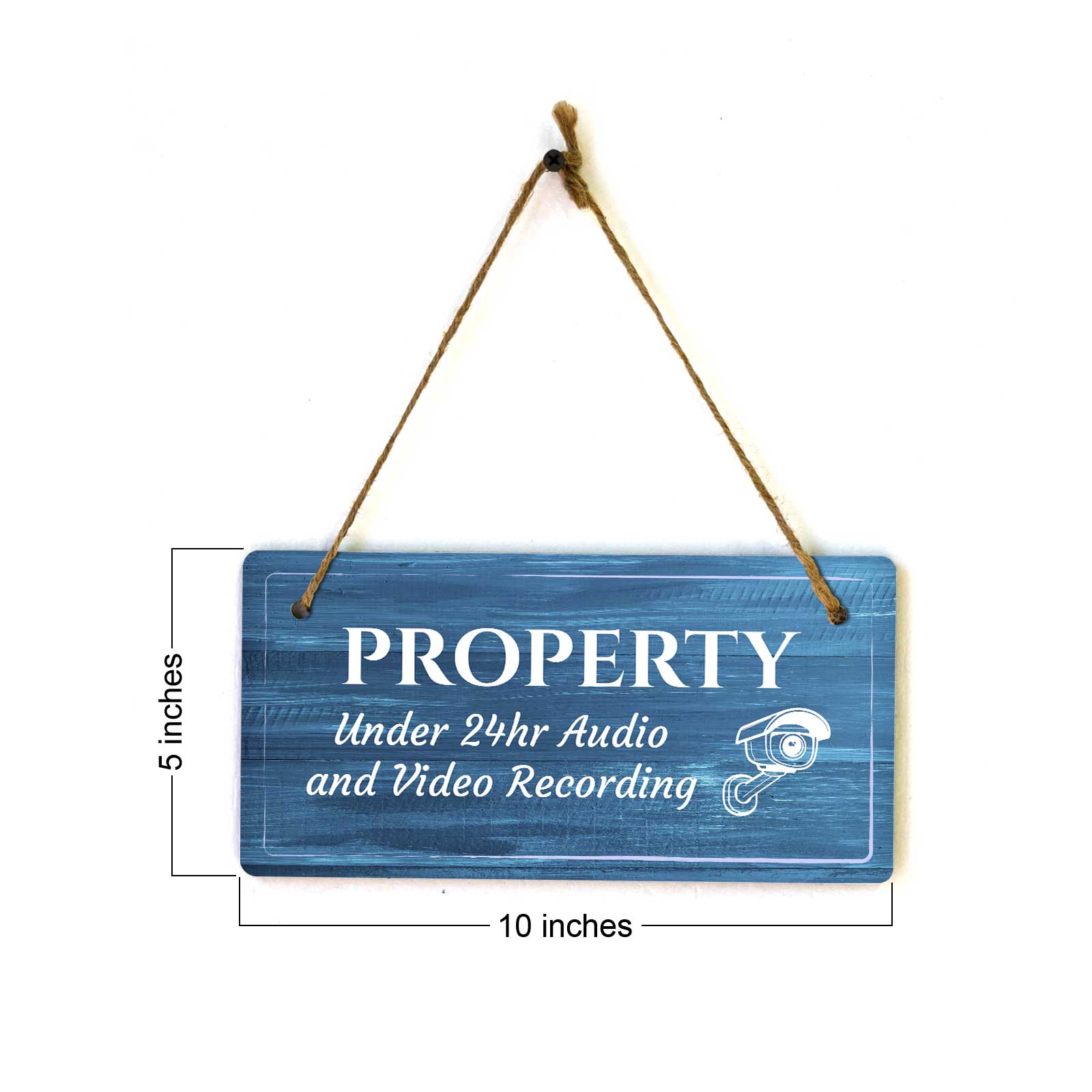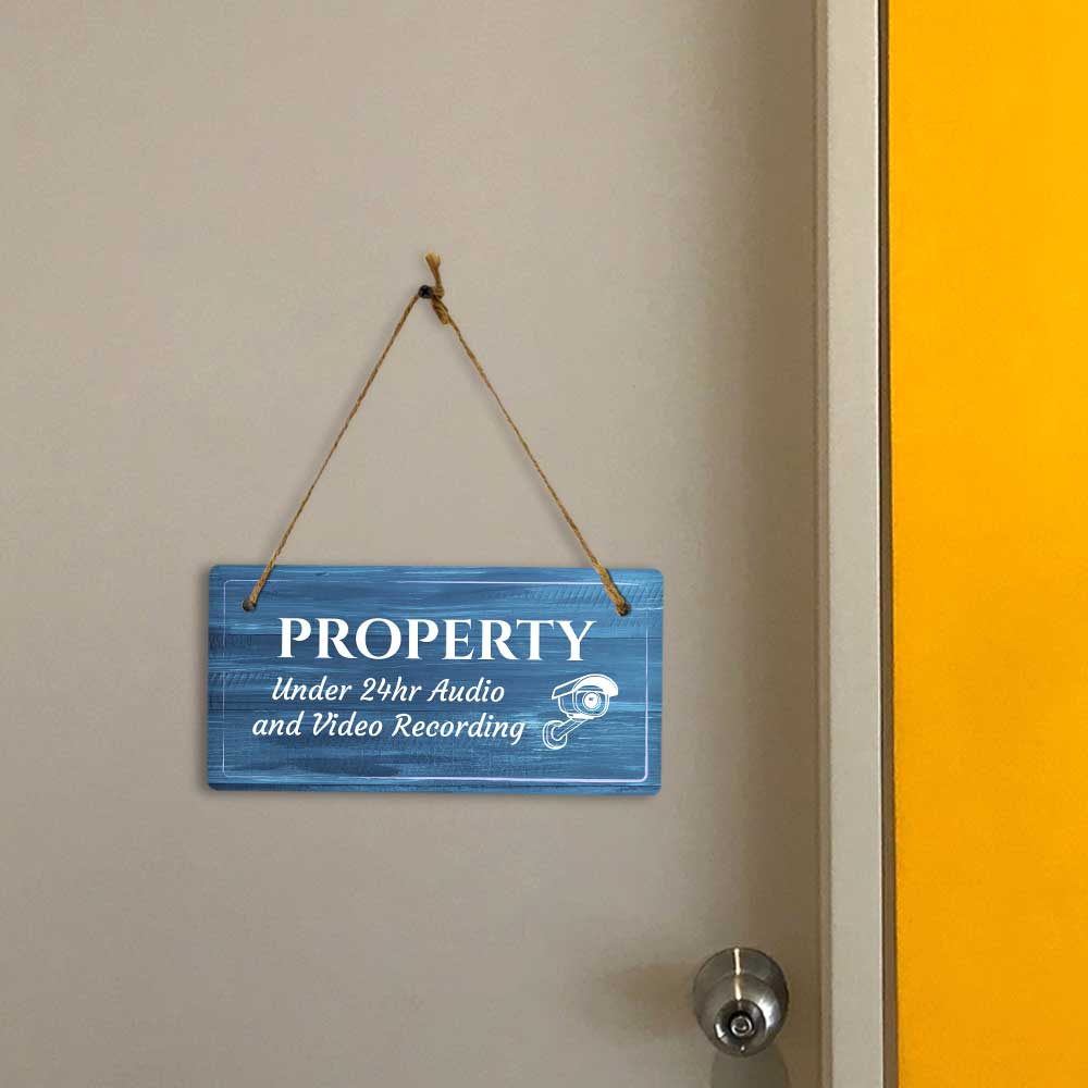 Security Surveillance Rustic Dark Blue Wood 5 x 10 Hanging Signs