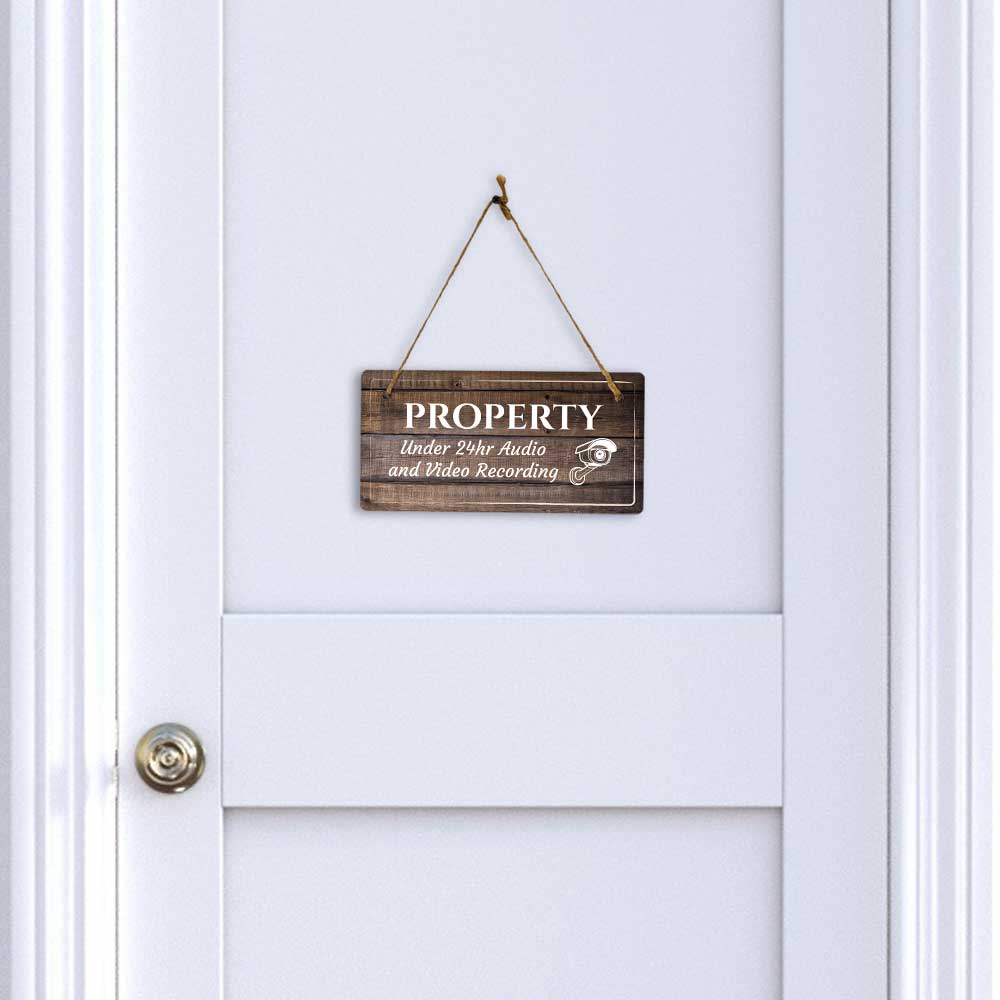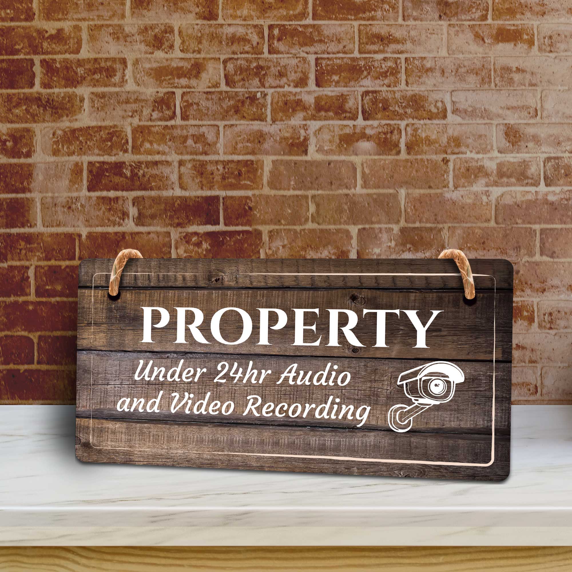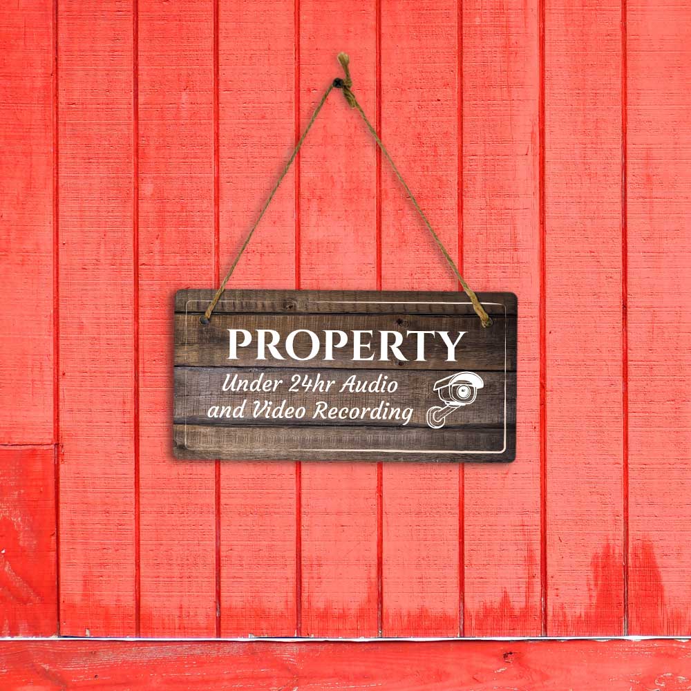 Security Surveillance Rustic Dark Wood 5 x 10 Hanging Signs