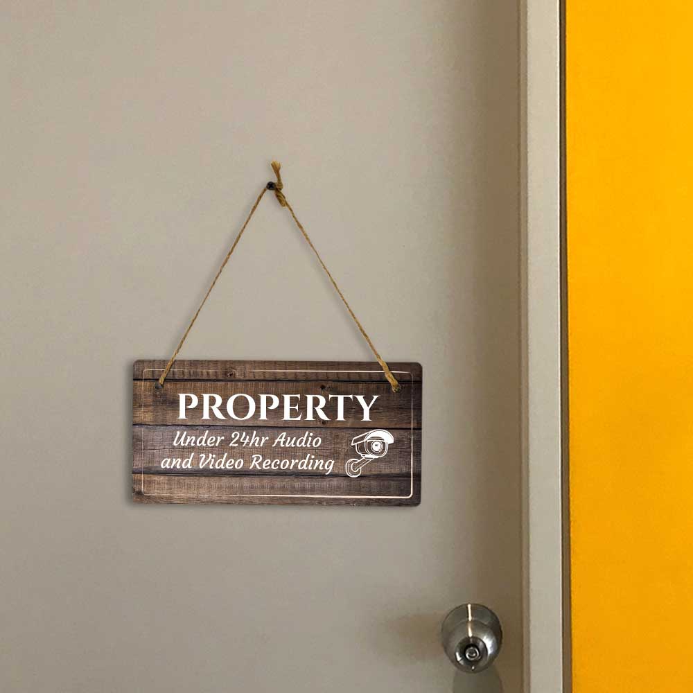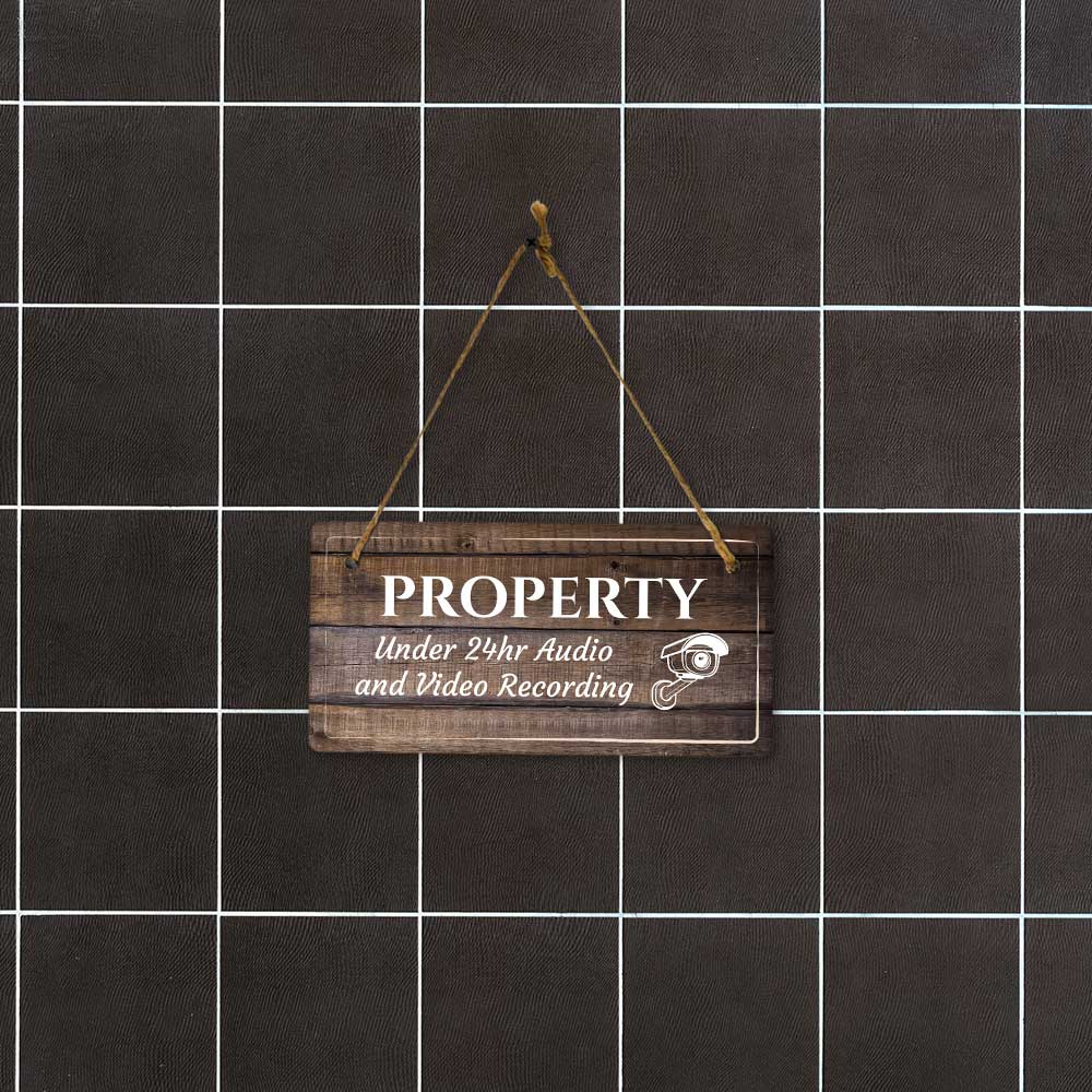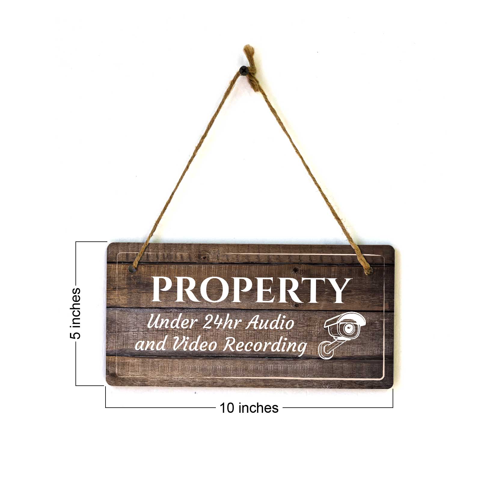 Security Surveillance Rustic Dark Wood 5 x 10 Hanging Signs