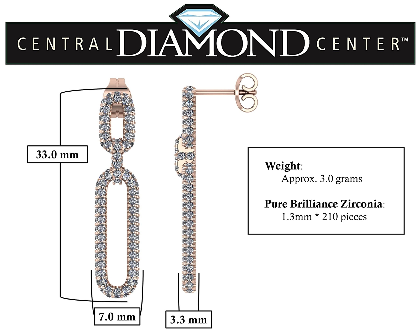 Rose Gold Plated Sterling Silver Double Oval Dangle Earrings With Cubic Zirconia