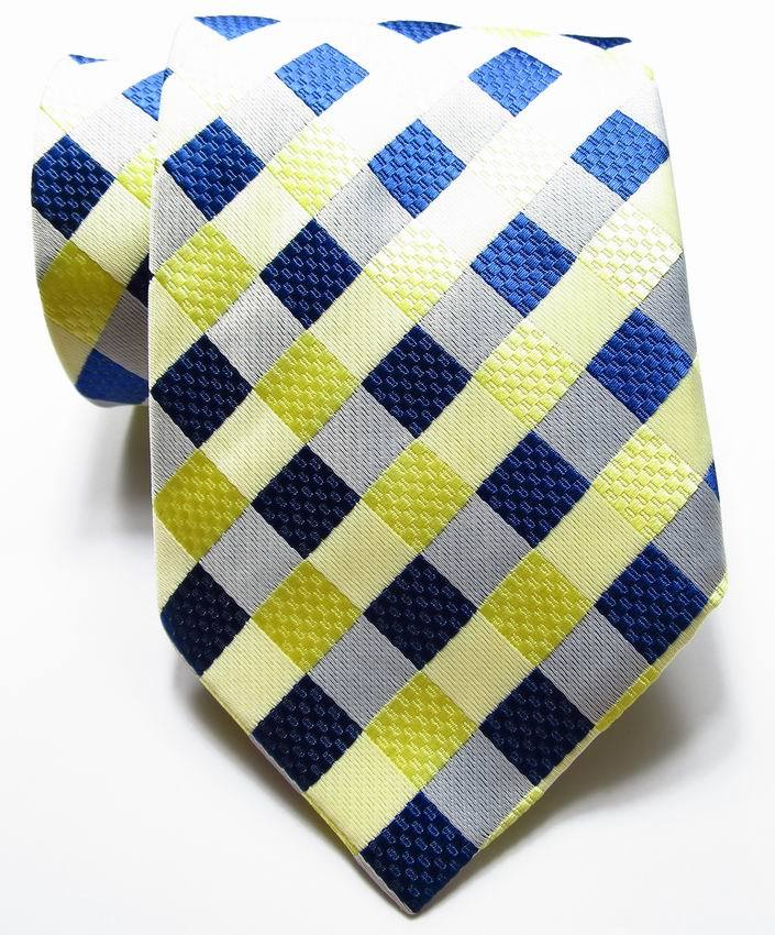 New Classic Checks Yellow Blue White JACQUARD WOVEN 100 Silk Men's Tie Necktie
