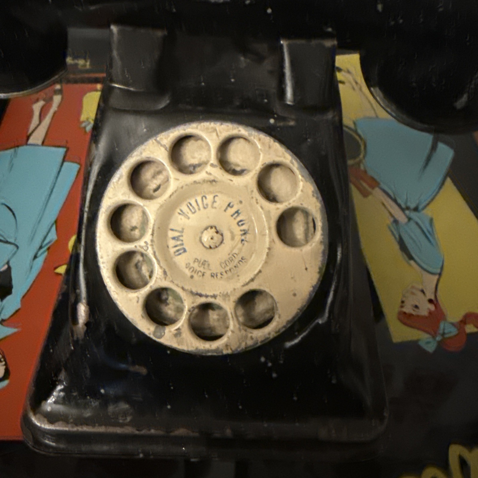как выглядит STEEL STAMPING CO. USA PHONE METAL ROTARY TOY TELEPHONE BLACK фото