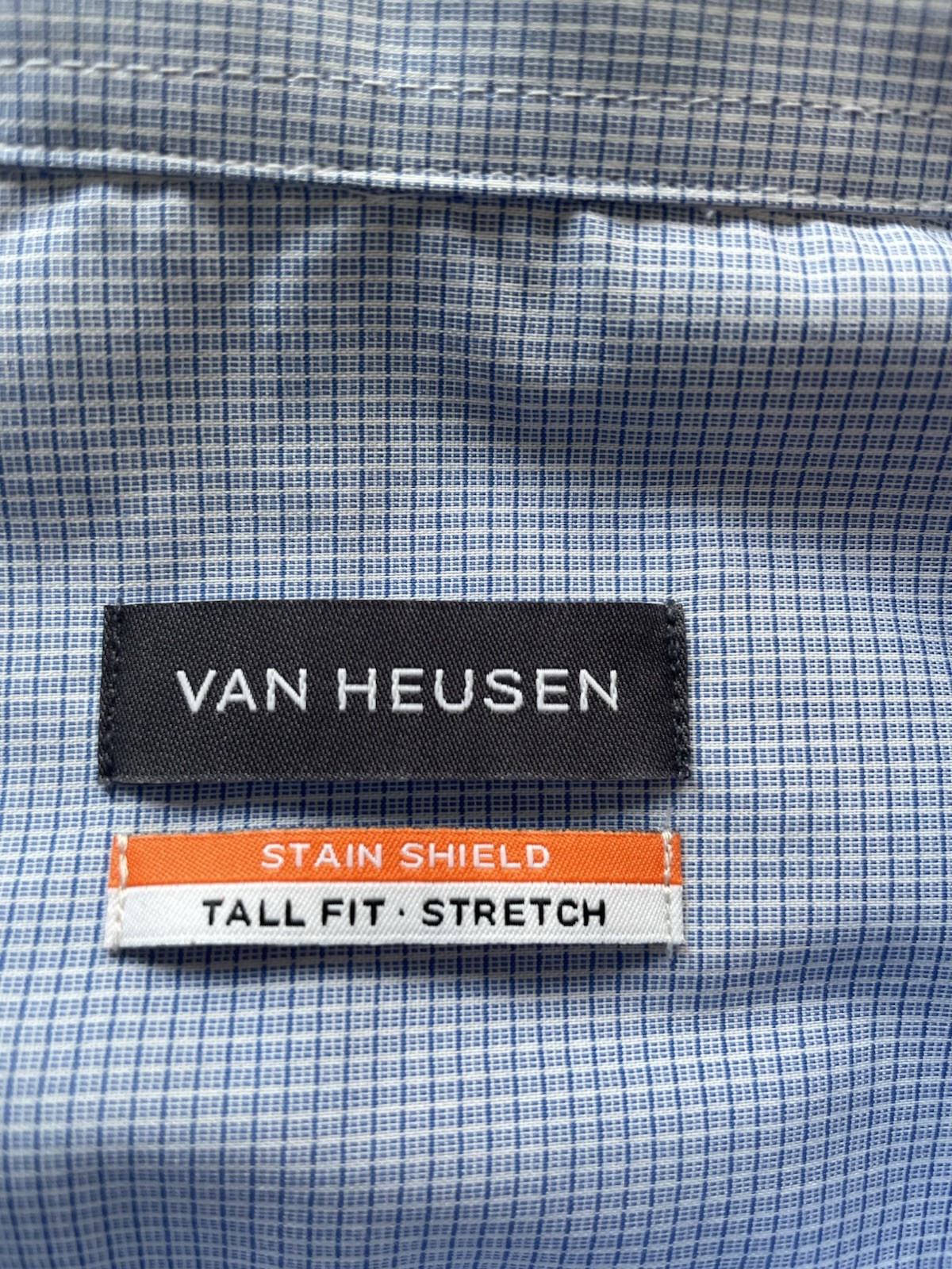 Van Heusen Stain Shield Tall Fit Stretch Dress Shirt Men's 20 35/36 4XL Blue