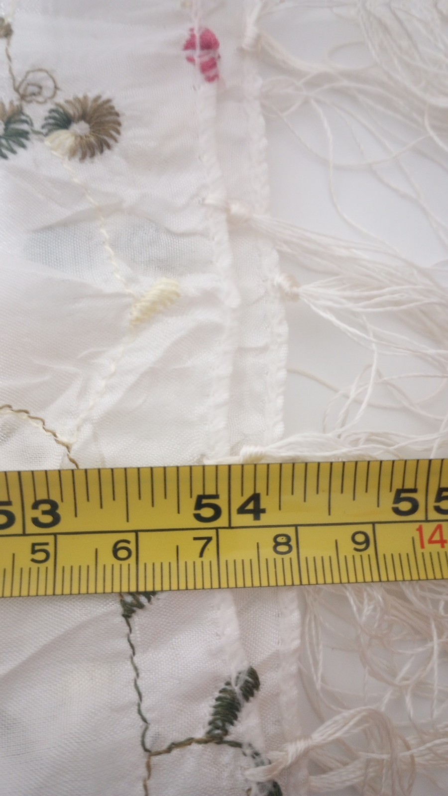 как выглядит Vintage White Scarf Crinckled W Ebroidered Flowers фото