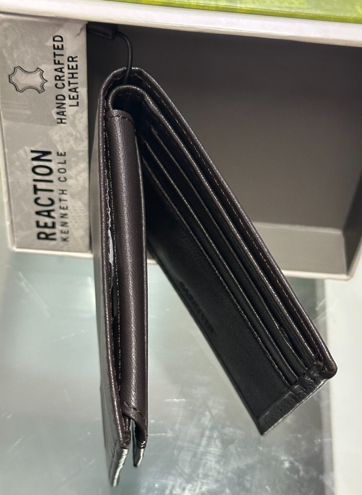 KENNETH COLE REACTION 220050 Genuine Handcrafted Leather BILLFOLD Wallet BROWN