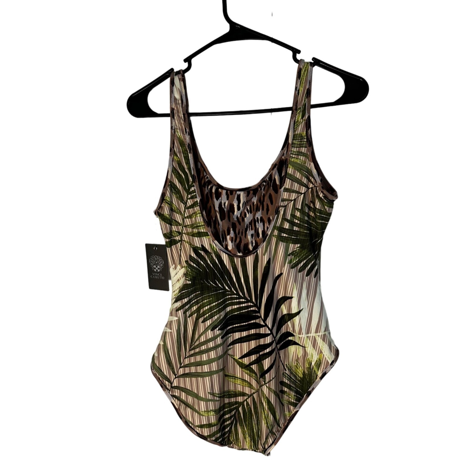 Vince Camuto Reversible One-Piece Swimsuit Leopard Palm Print Size 14 Women's