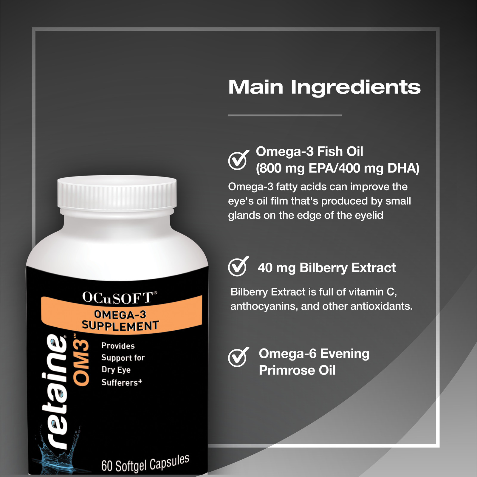 OCuSOFT Retaine OM3 Omega 3 Supplement 60 Soft Gel Capsules