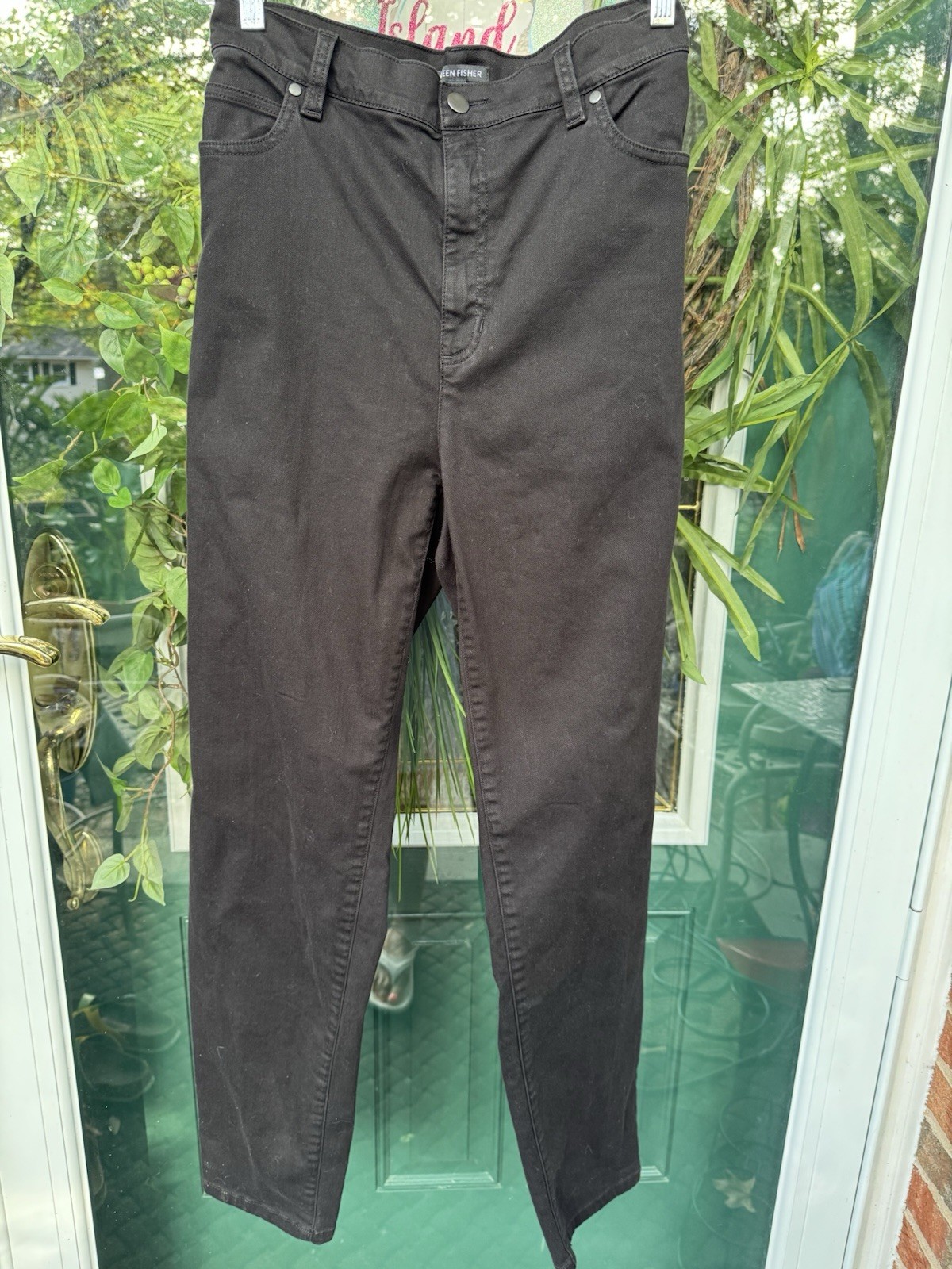 как выглядит Eileen Fisher L Organic Cotton/stretch Tapered Black Jeans EUC фото