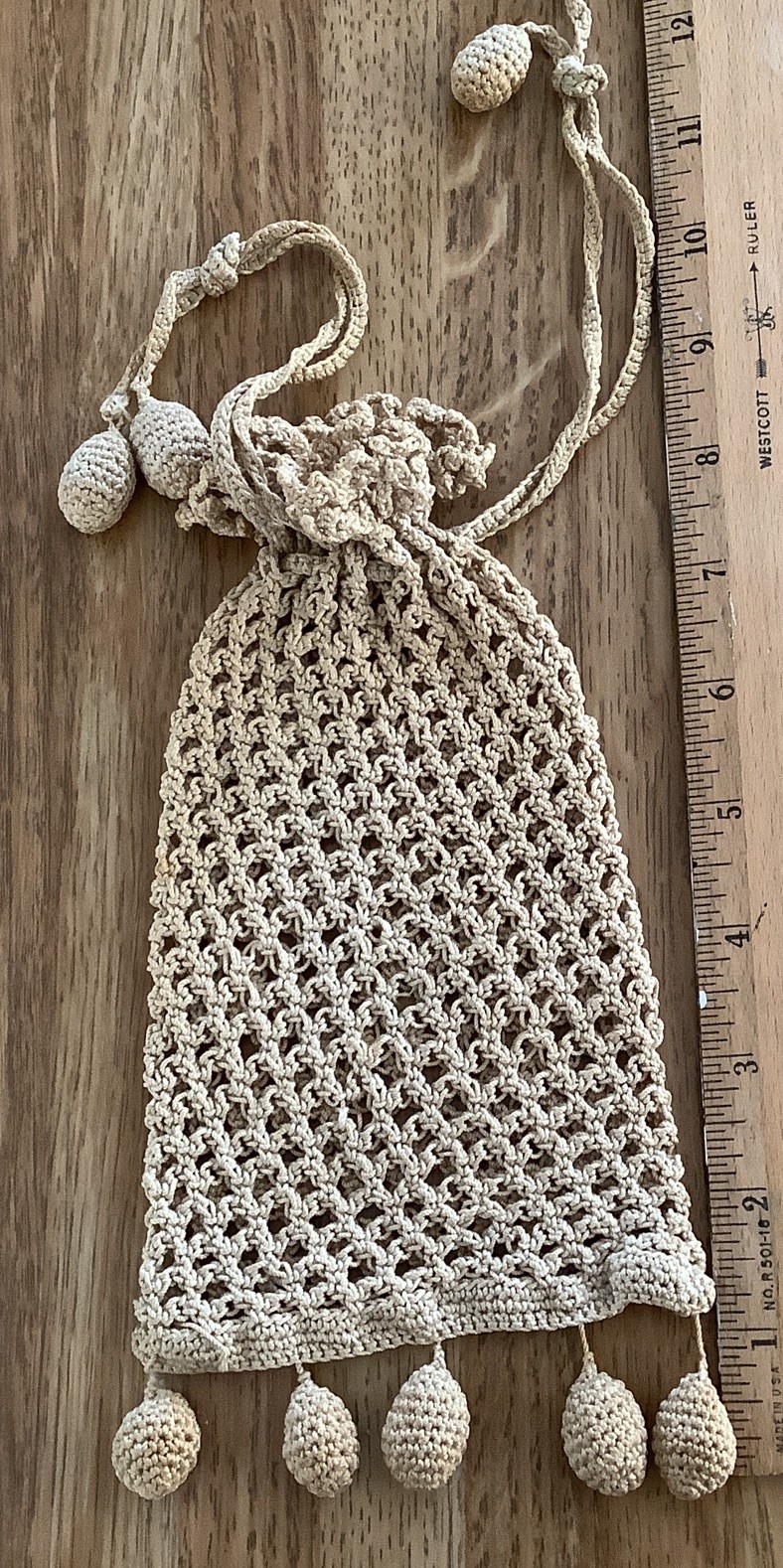 3 Antique Victorian VINTAGE Hand Crocheted ECRU COTTON Purses Bags