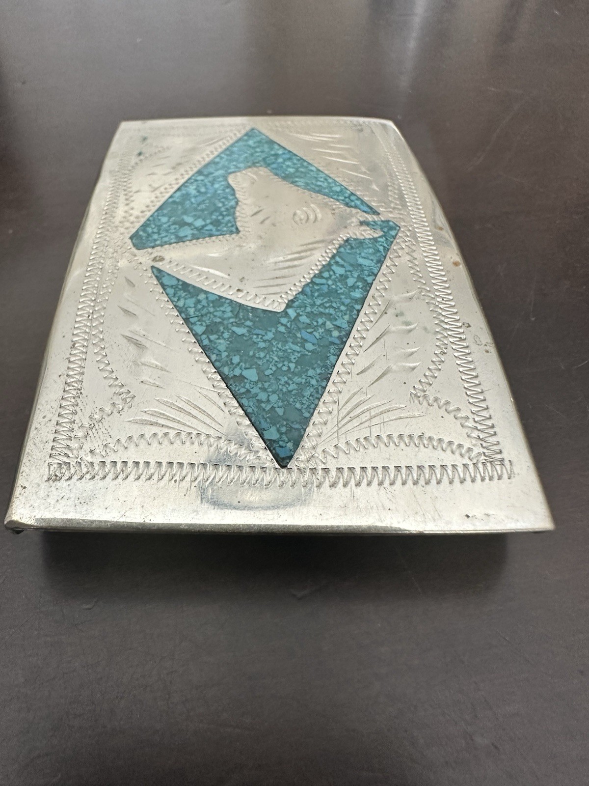 Southwestern Alpaca Mexico Native Boho Inlay Turquoise Horse Belt Buckle Navajo