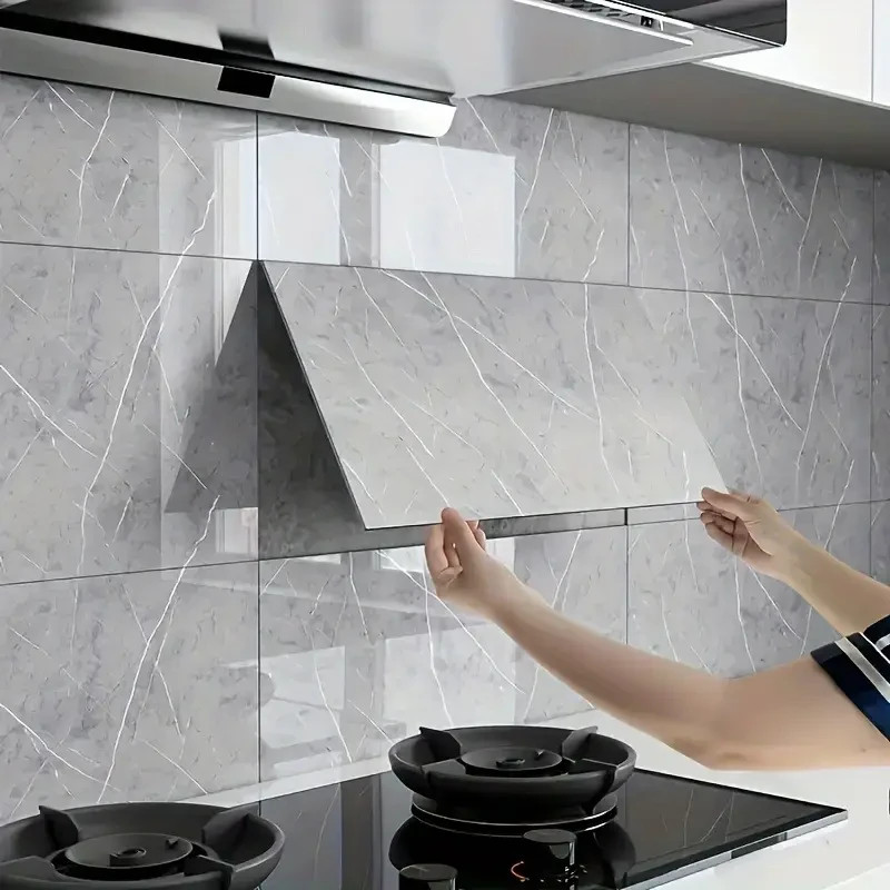 Self-Adhesive 12x24 40PCS Glossy Marble Pattern Wall tile / stickers Waterproof