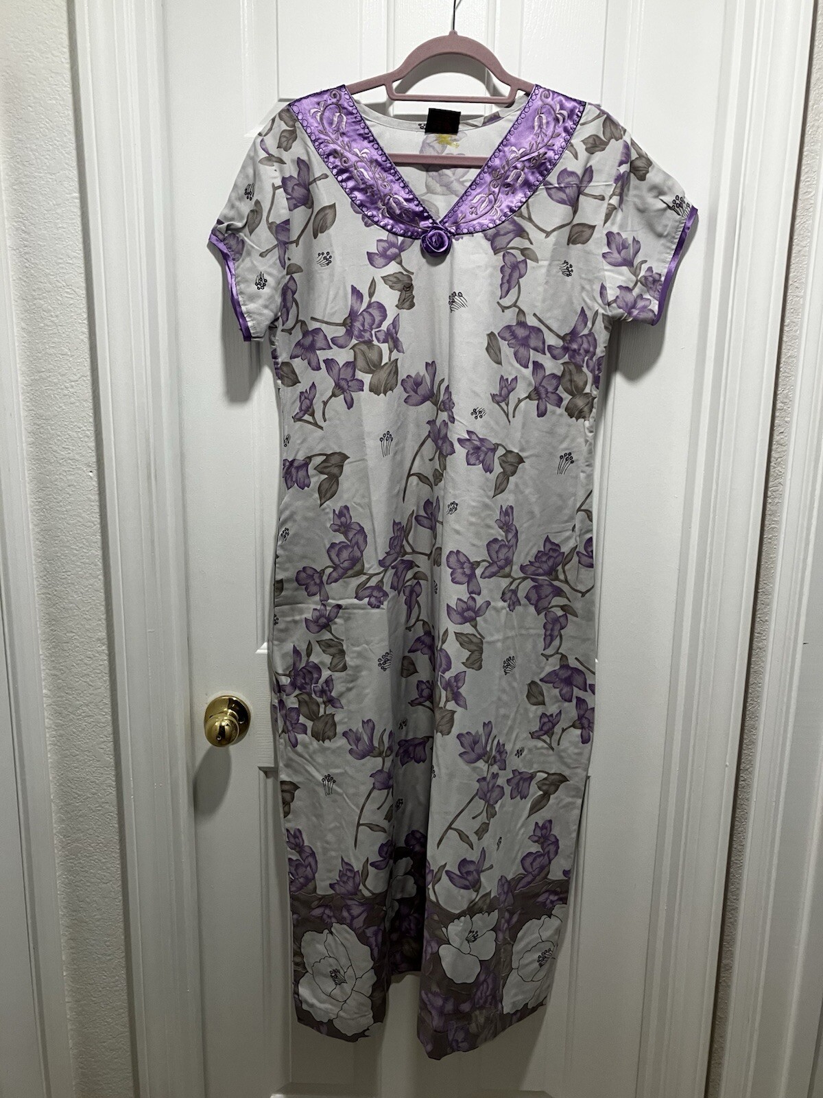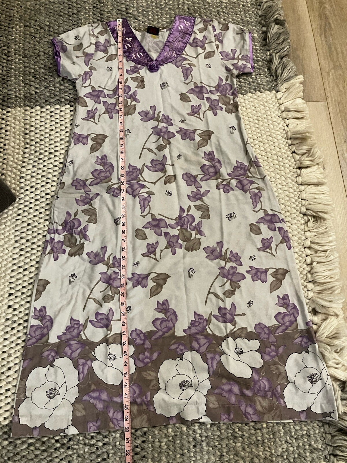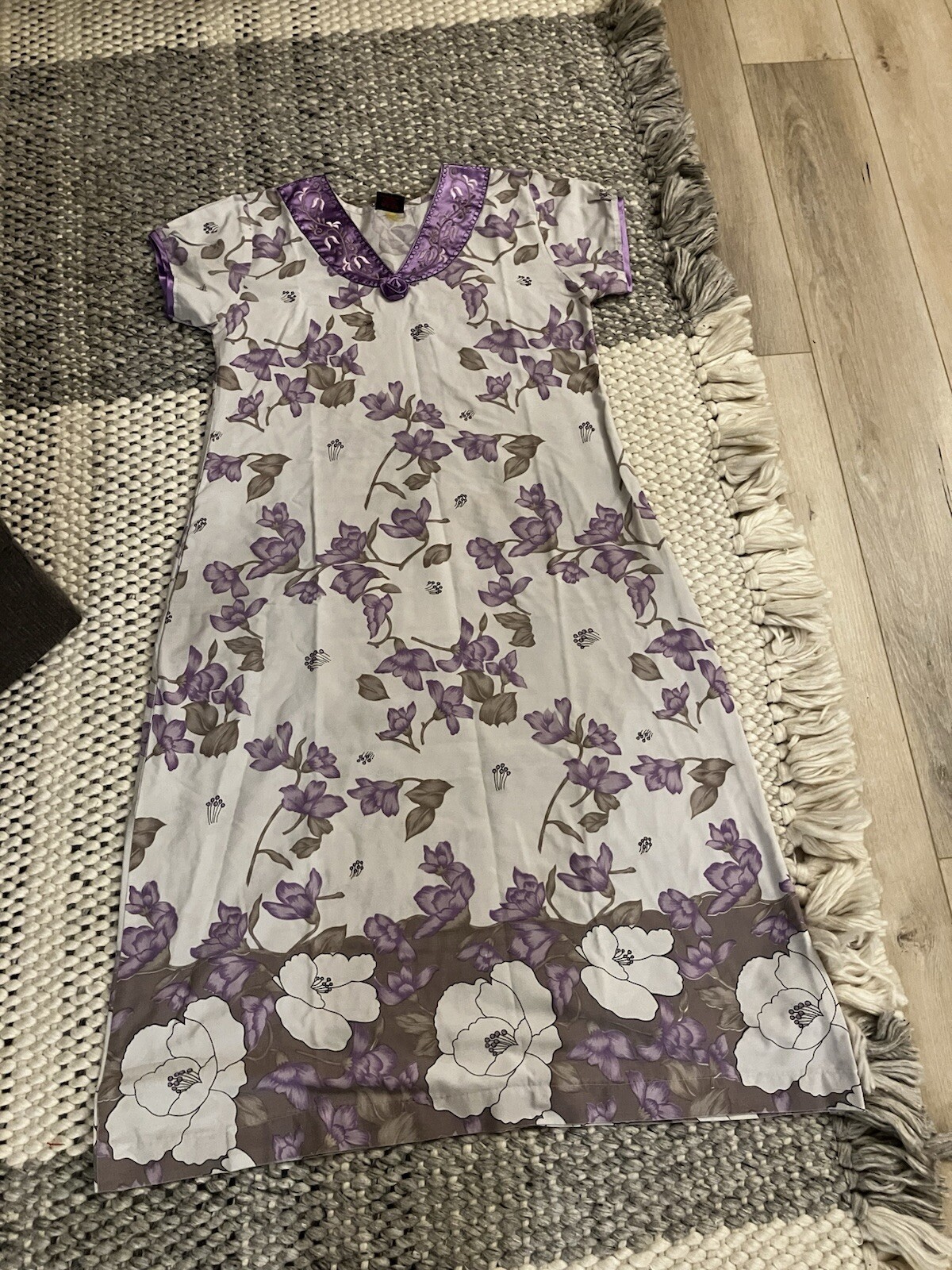 Women s Traditional Indian Purple Floral Long Nightgown Sz L See Pics