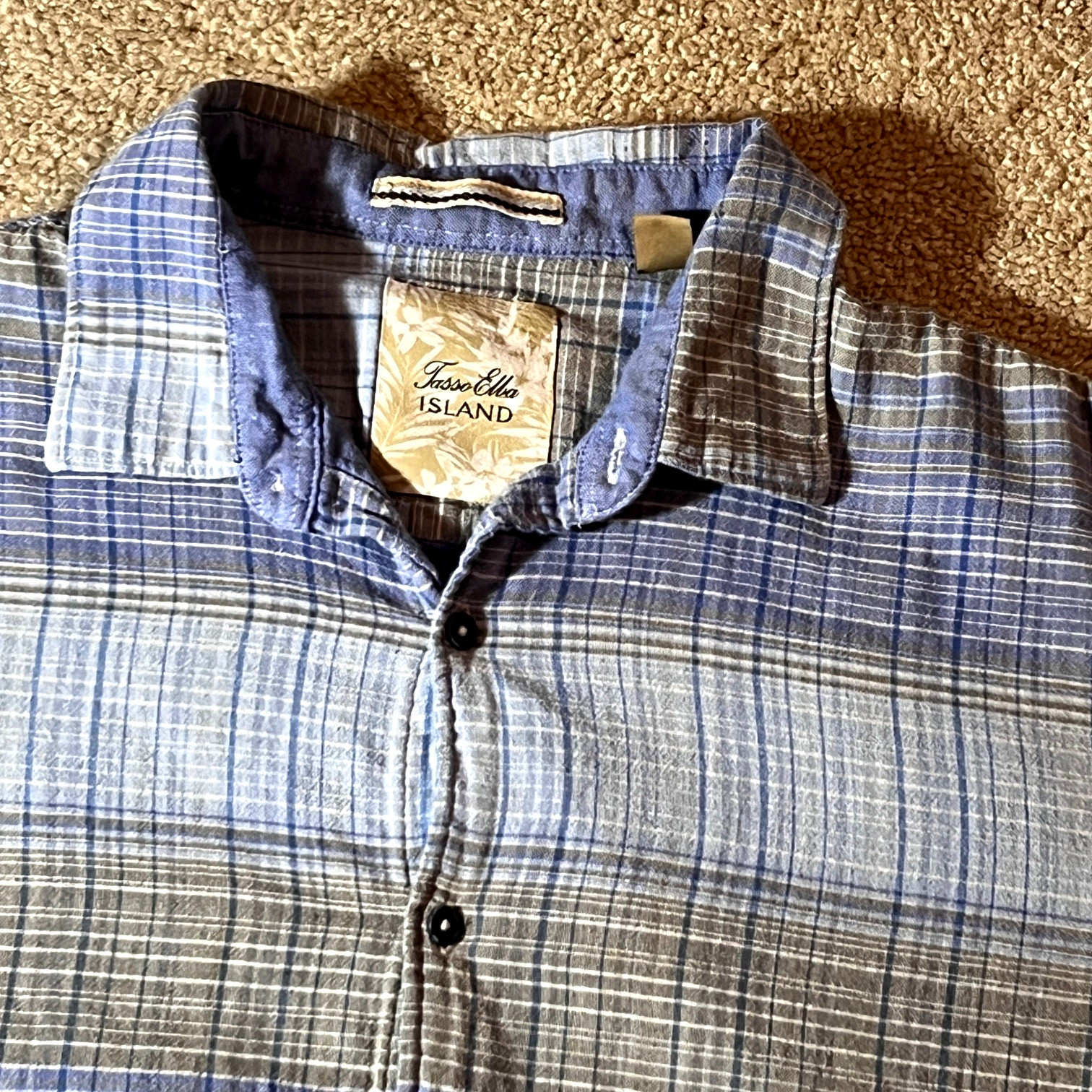 как выглядит Mens Tasso Elba Island Button Down Shirt Short Sleeve Cotton Plaid Sz XL фото