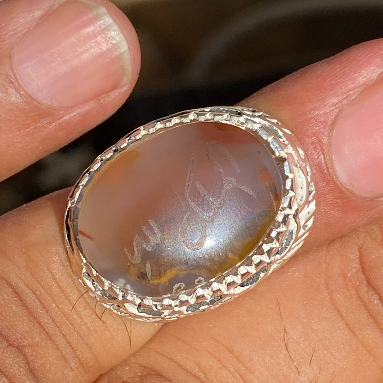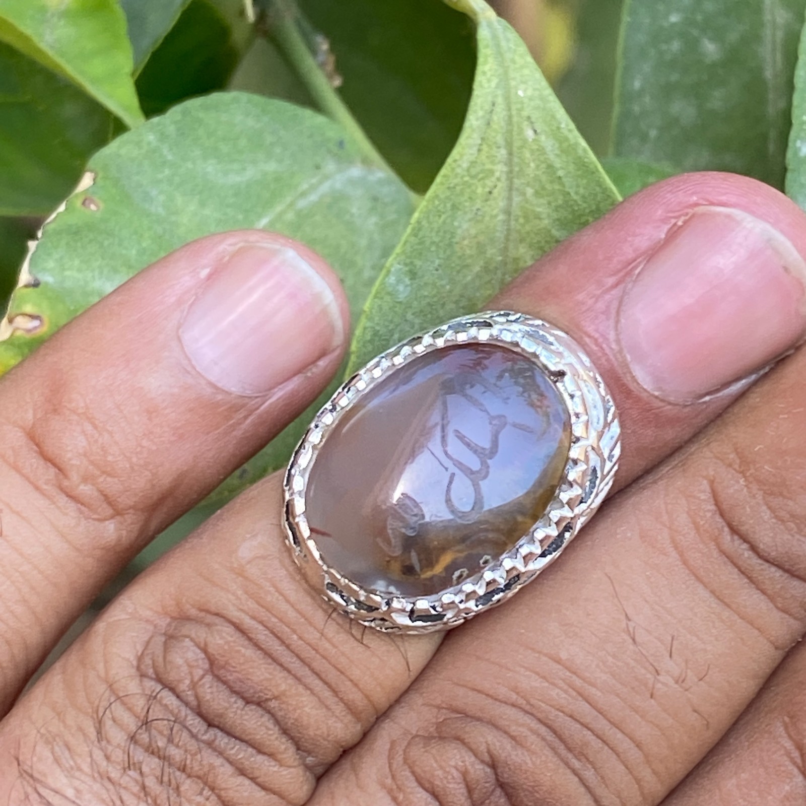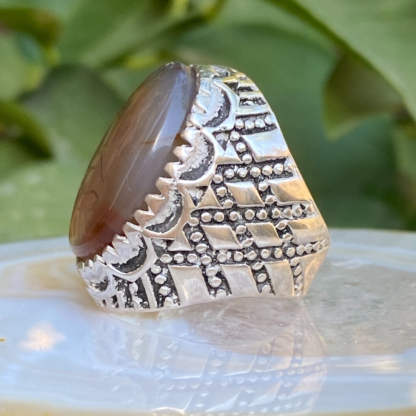 islamic 925 Sterling Silver men ring natural yemeni aqeeq agate